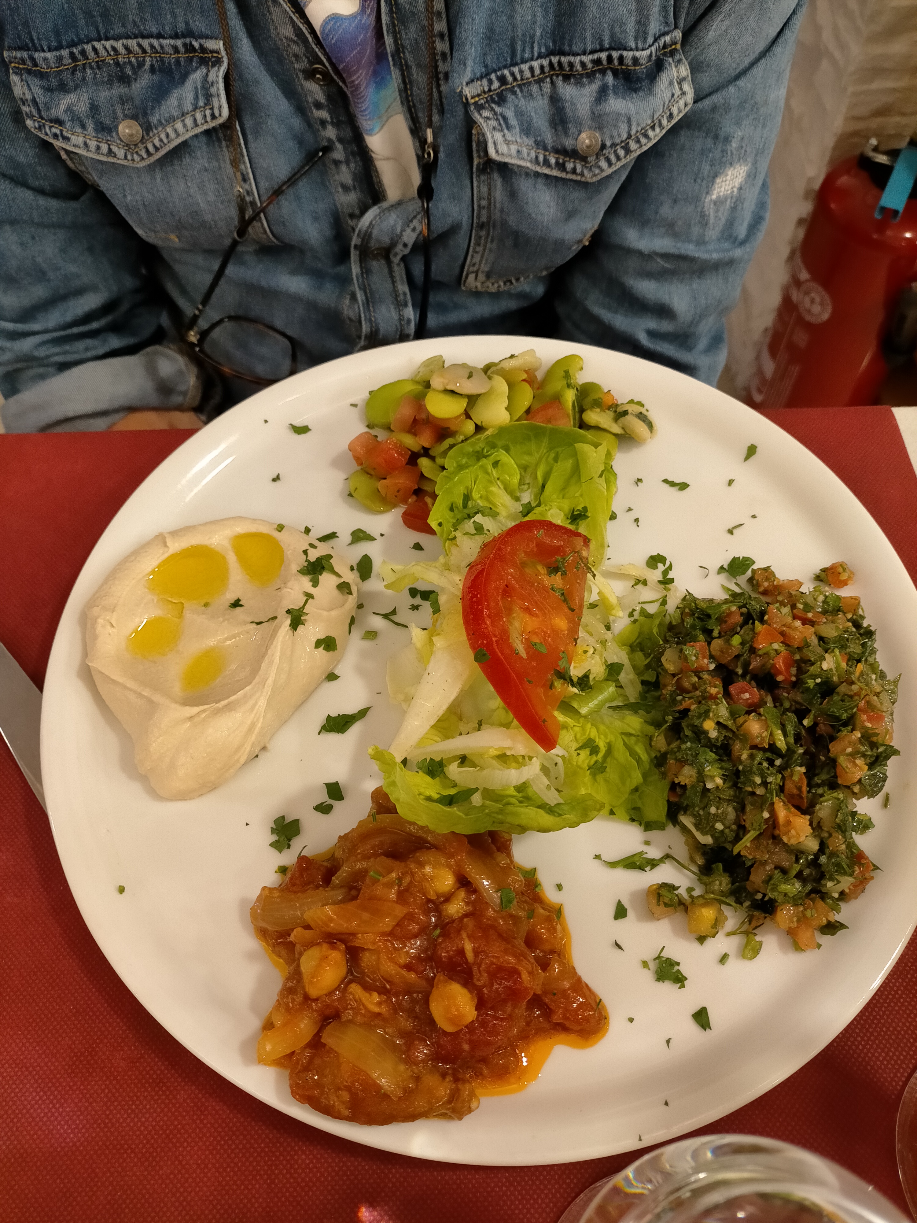 Très bonne surprise ! Des entrées très savoureuses et typiques qui donnent l impression de voyager. Les plats sont bons mais plus simples. Menu même le soir, très bonne adresse et personnel très agréable.