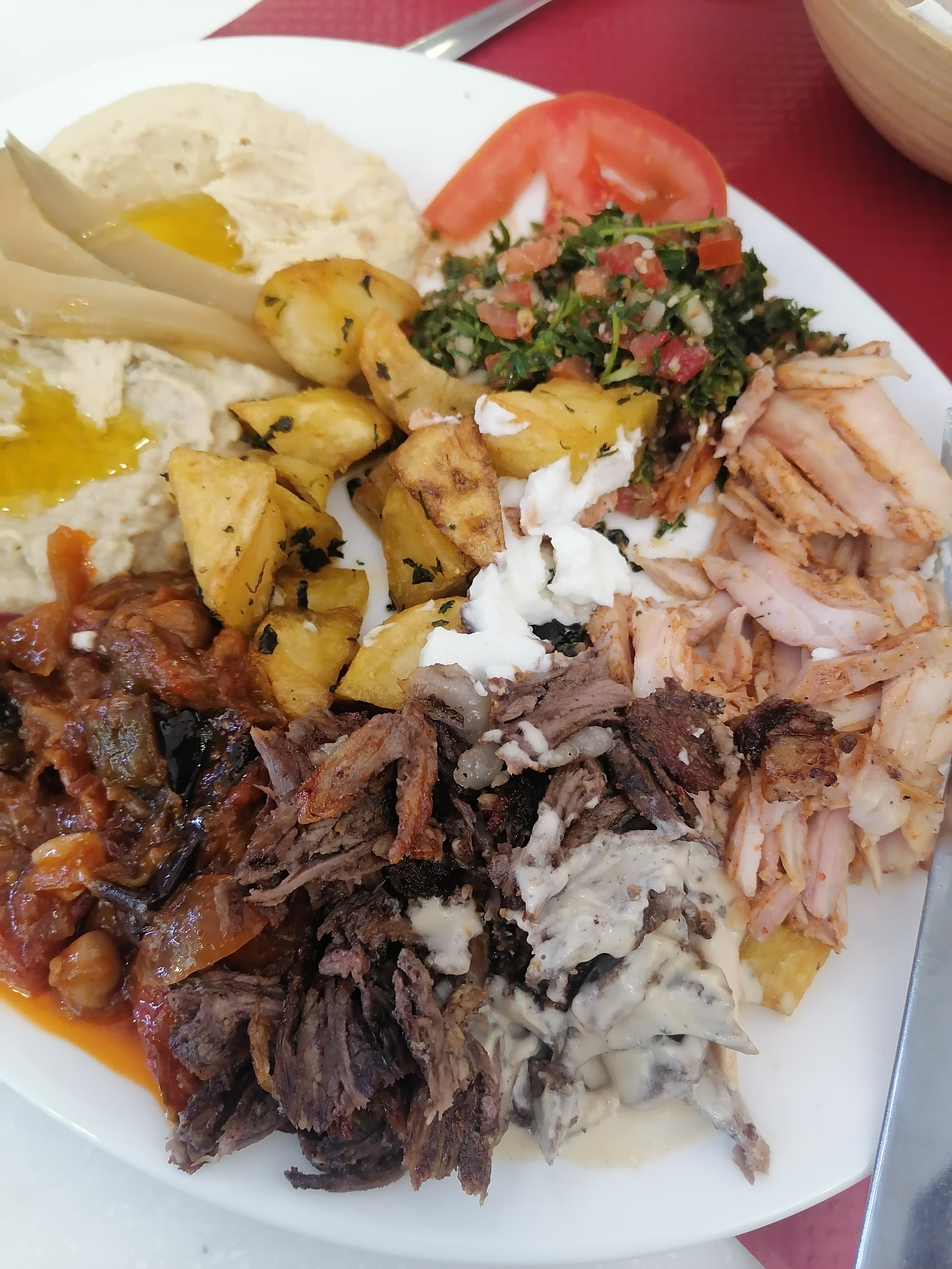Très très bon! , enfin de la viande et du poulet à la broche fais maison et accompagnement spécialité libanaise au top👌👍
