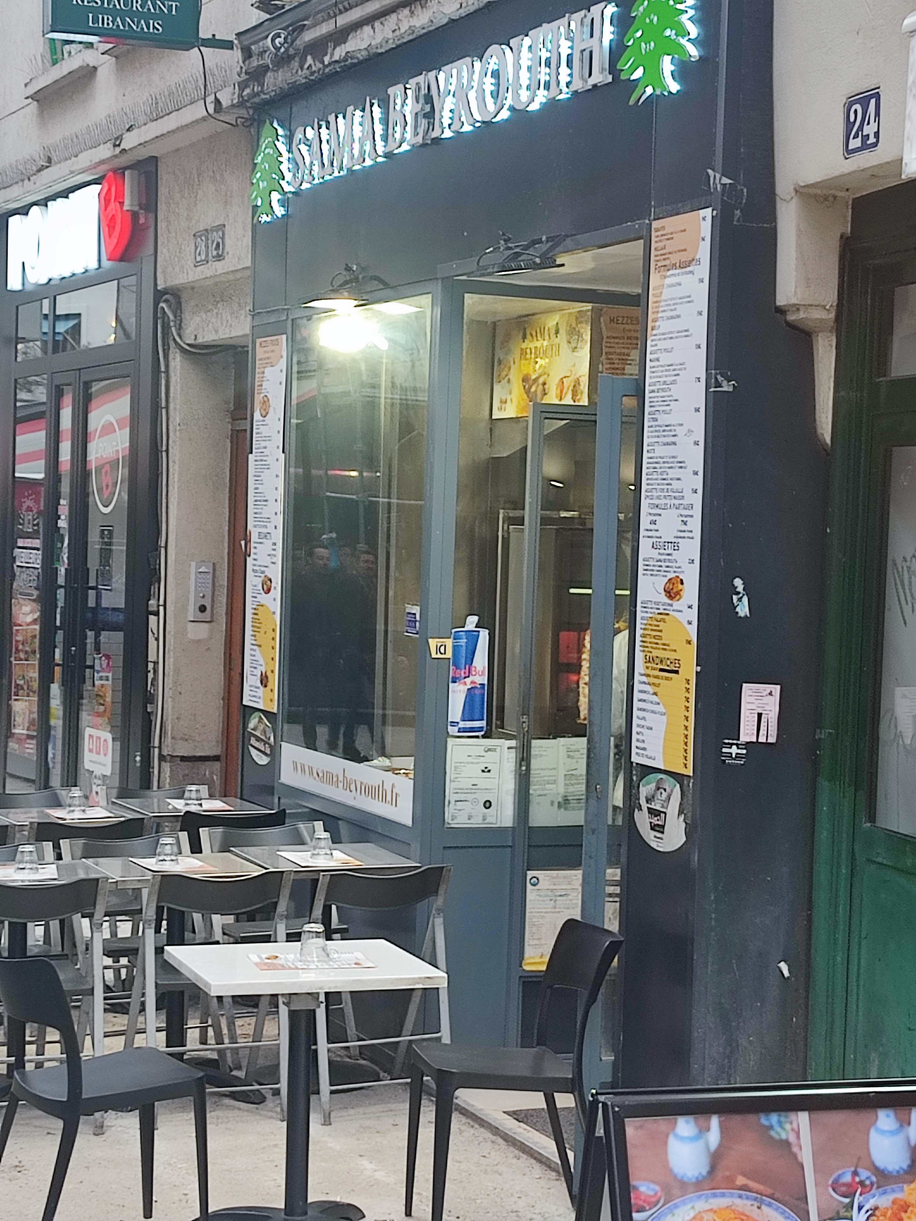 Fuyezzzz Ma pire expérience gustative sans exagérer. L'accueil était médiocre, la personne ne parlait pas français, j'ai pris 2 sandwichs... Que dire, il en émanait un mauvaise odeur qui a persisté longtemps après sur mes lèvres.. Pas de taboulé dedans ni de la crème d'ail ou de tahine, ils ont mis de la pomme de terre ( curieux ) , somme toute ils étaient infectes, sans saveur, et presque froid. Le comble revient à la knefeh qui était censé être un dessert chaud, croustillant et parfumé au sirop de fleur d'oranger, il l'a fait réchauffer au micro onde, dans une barquette en alu, des grosses étincelles ont fusé du micro ondes, ça ne tournait pas, un seul côté s'est réchauffé, et ce dessert était immangeable, de la semoule sans saveur molle au lieu de cheveux d'anges dorés, il a sorti une bouteille cristaline avec un mélange dont lui seul connait le contenu, presque pas de pistache et une mozzarella caoutchouteuse... Un vrai sacrilège culinaire, tout était sale, il a fallu demandé 4 fois pour avoir serviette, couvert... Je suis déçue et choquée que cet établissement tourne à plein régime.. Les commentaires positifs sont invraisemblable c'est impossible qu'ils soient réels tant la nourriture est insipide et l'endroit nauséabond. À vomir ce lieu et la nourriture et le personnel pas agréable du tout. Dommage pas de zéro étoile possible Plus jamais sama beyrouth