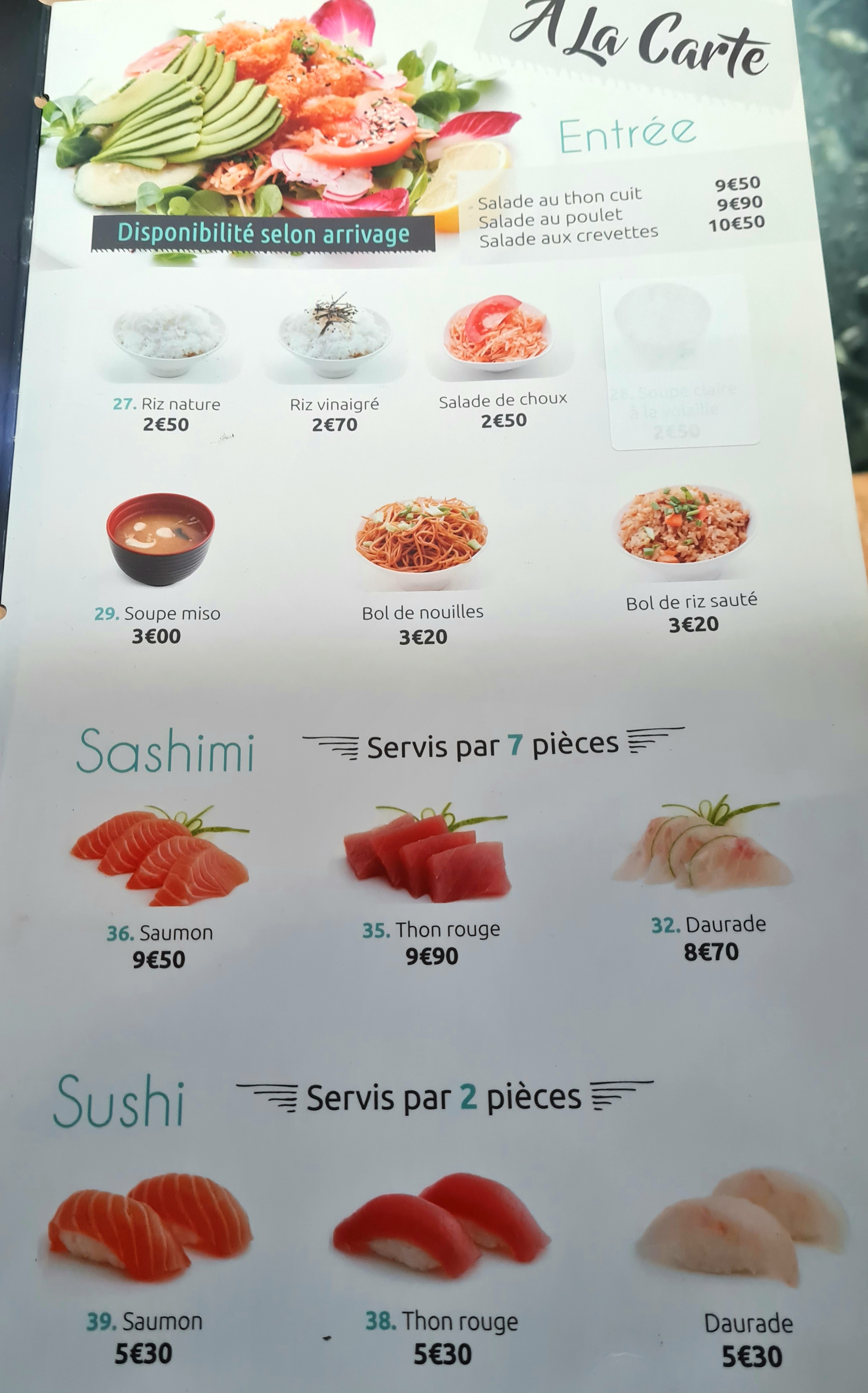Je donne 3* pour le cadre qui vous fait voyager ! Parlons menu et carte: -La carte est peu fournie. -Pour un mangeur de sushis, maki, california,... on est obligé de les prendre par 6 carte, car pas de menu conséquent. -La plupart des menus proposent en majorité des brochettes et des sashimi. Si je viens manger japonais dans un restaurant japonais pour manger japonais, c'est pas pour manger un barbecue ou des bouts de poissons cru que je peux faire moi-même... Ce qui m'a extrêmement déçu c'est l'attente interminable pour être servi ! Je ne recommande pas.