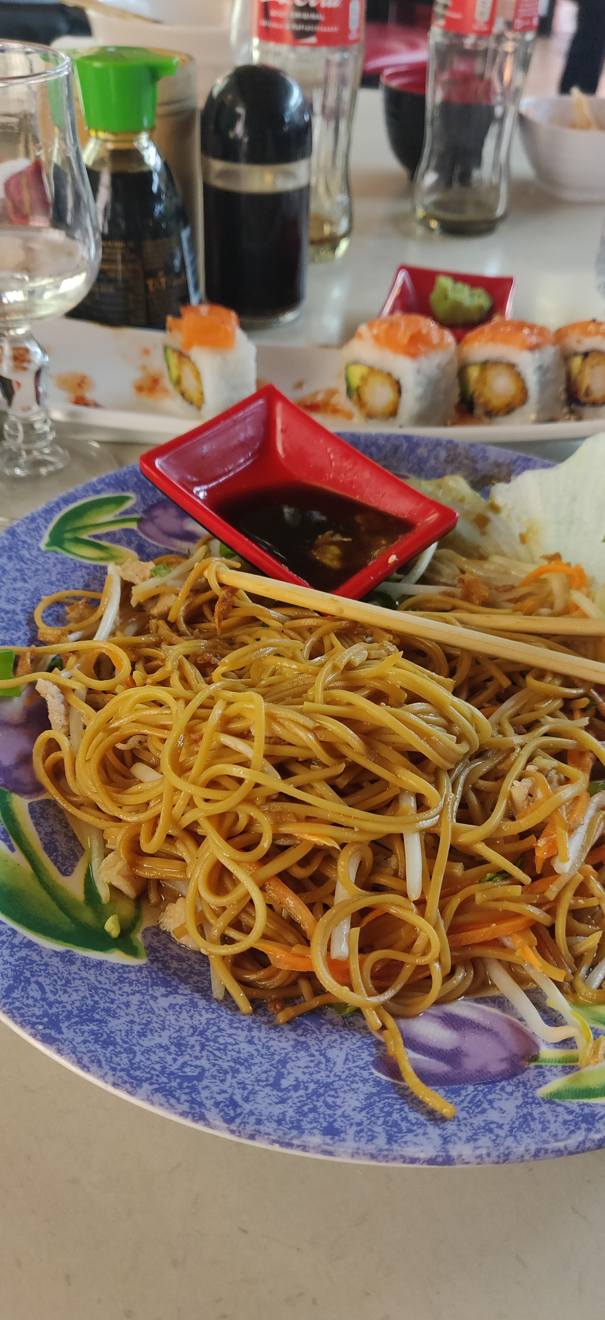 Patronne très très désagréable, plat servi avant les entrées et encore pas en totalité. Le serveur arrive avec la coupelle de salade plus son doigt dedans. Boulettes de poulet ressemblant à de la pâtée pour chien, quand on a demandé à la fameuse dame citée plus haut elle nous répond sèchement les boulettes c'est comme ça chez nous !! . Prix trop élevé pour ce que c'est, california servis par 8 mais attention certains sont des demis california. Restaurant à fuir