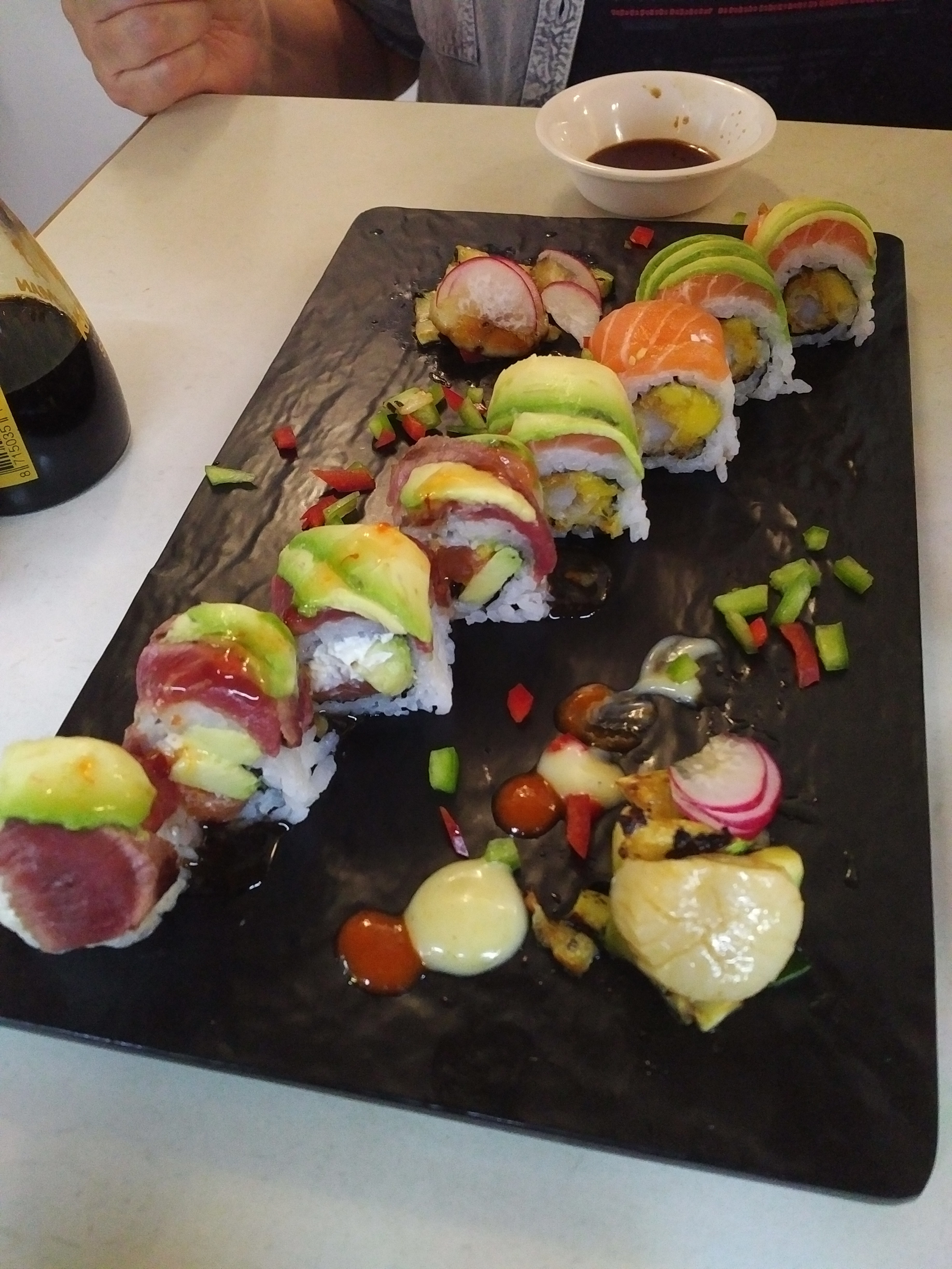 J'ai vraiment adorer. Nous somme venue en fin de service , la serveuse était incroyablement rapide et les sushi fait par le cuisinier en face de nous était incroyable la cuisson du riz vraiment très bonne le poisson plus encore, et le poisson parlons en la qualité était vraiment incroyable on voyez la différence avec des restaurant asiatique commun. Pourtant l'ancienne ne paye pas de mine mais l'intérieur et vraiment beau et immersif je recommande