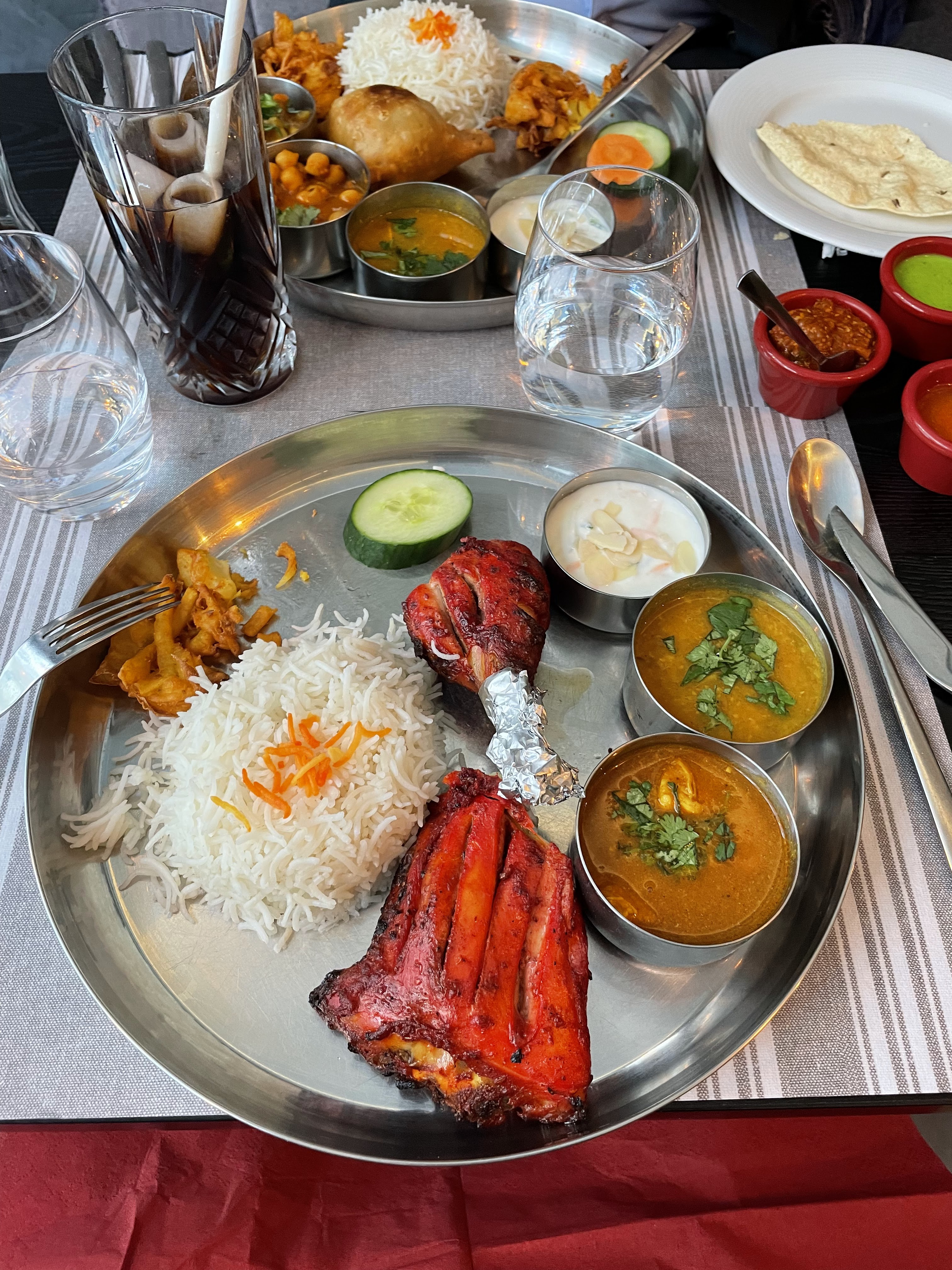 Excellent restaurant indien et spécialités nepalaises. J'ai choisi les spécialités nepalais, en entrée de chaussons à la vapeur et un agneau annapurna. Viande hyper fondante. Nan fromage et ail excellent. Les personnel est très sympa nous a offert digestif nepalais.