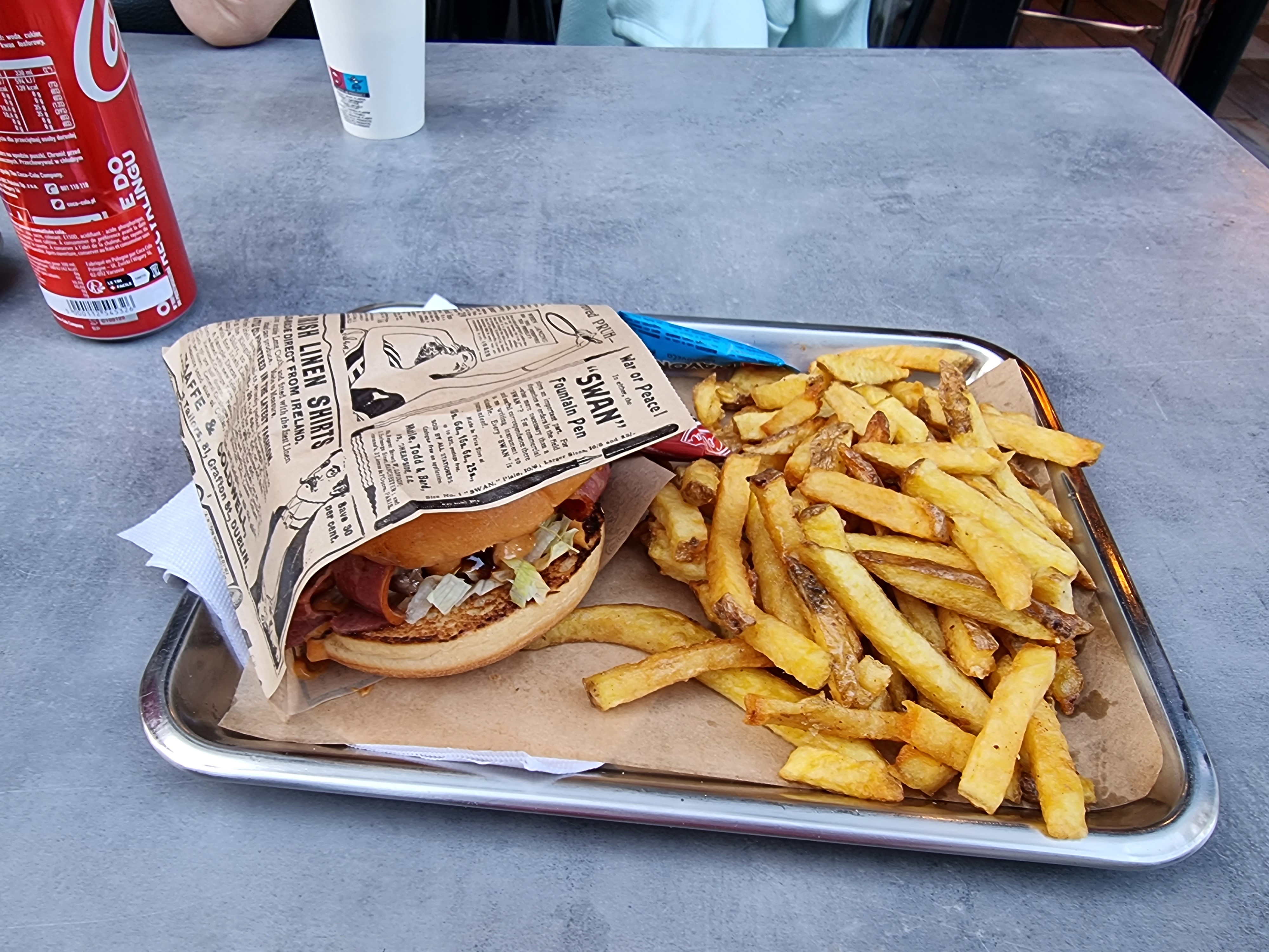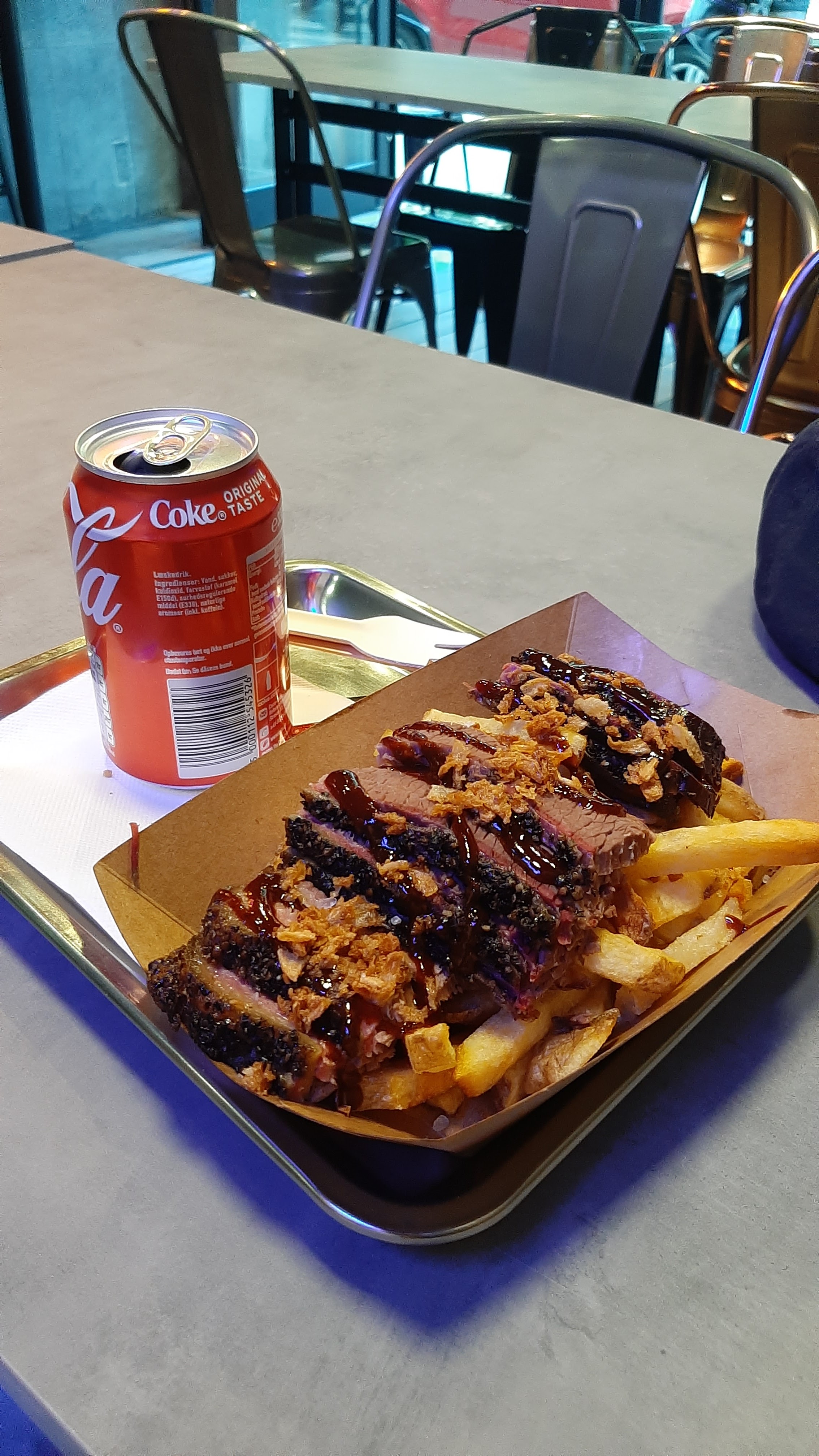 Nous avons commandé 2 burgers: agneau et brisket. Concernant la viande d'agneau, elle était hyper tendre et goûteuse, une vraie tuerie. Les pains des burgers étaient excellents. Mais quand même un bémol pour le brisket: la viande avait un bon goût fumé, mais elle était bien trop cuite et sèche à mon goût. Les frites maison quant à elle étaient bonnes, mais sans plus.