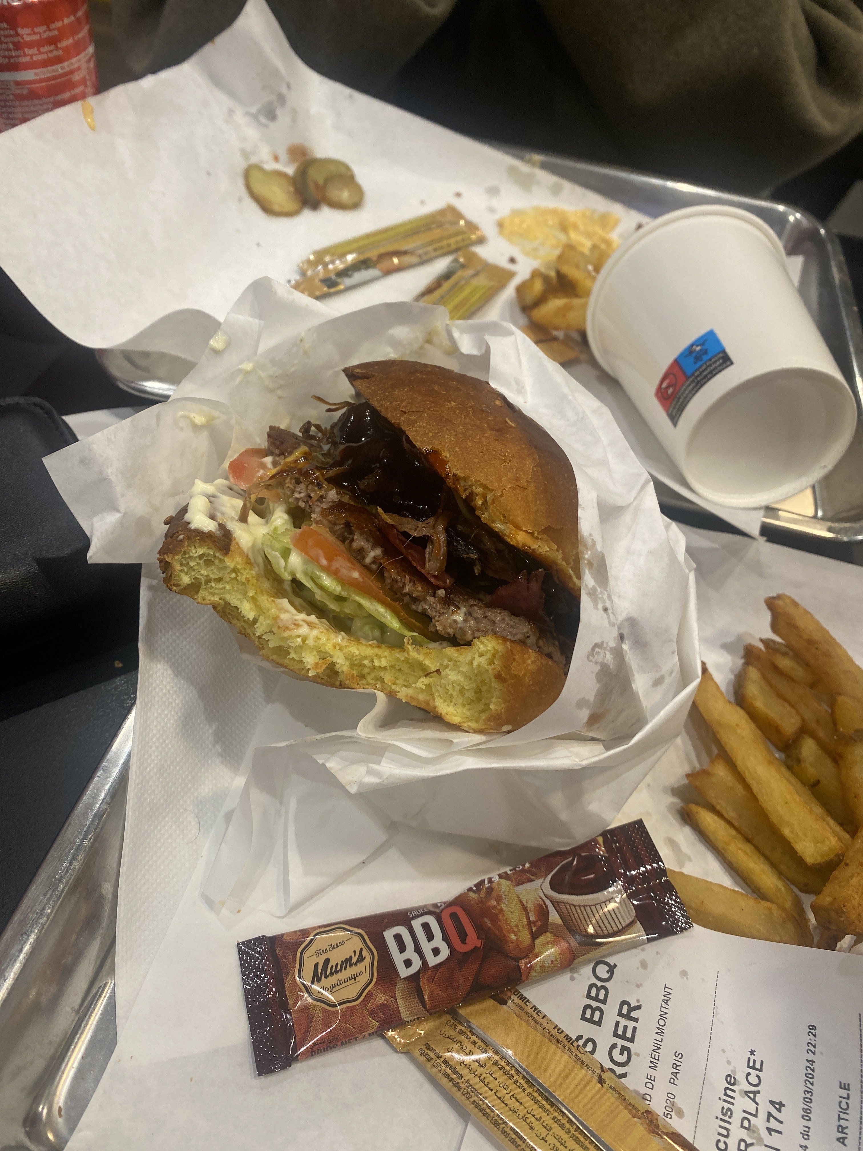 J'ai manger 1 burger (smash) classique qui été très bon et comme les frites faites apparemment maison surtout au vu du prix vraiment abordable.