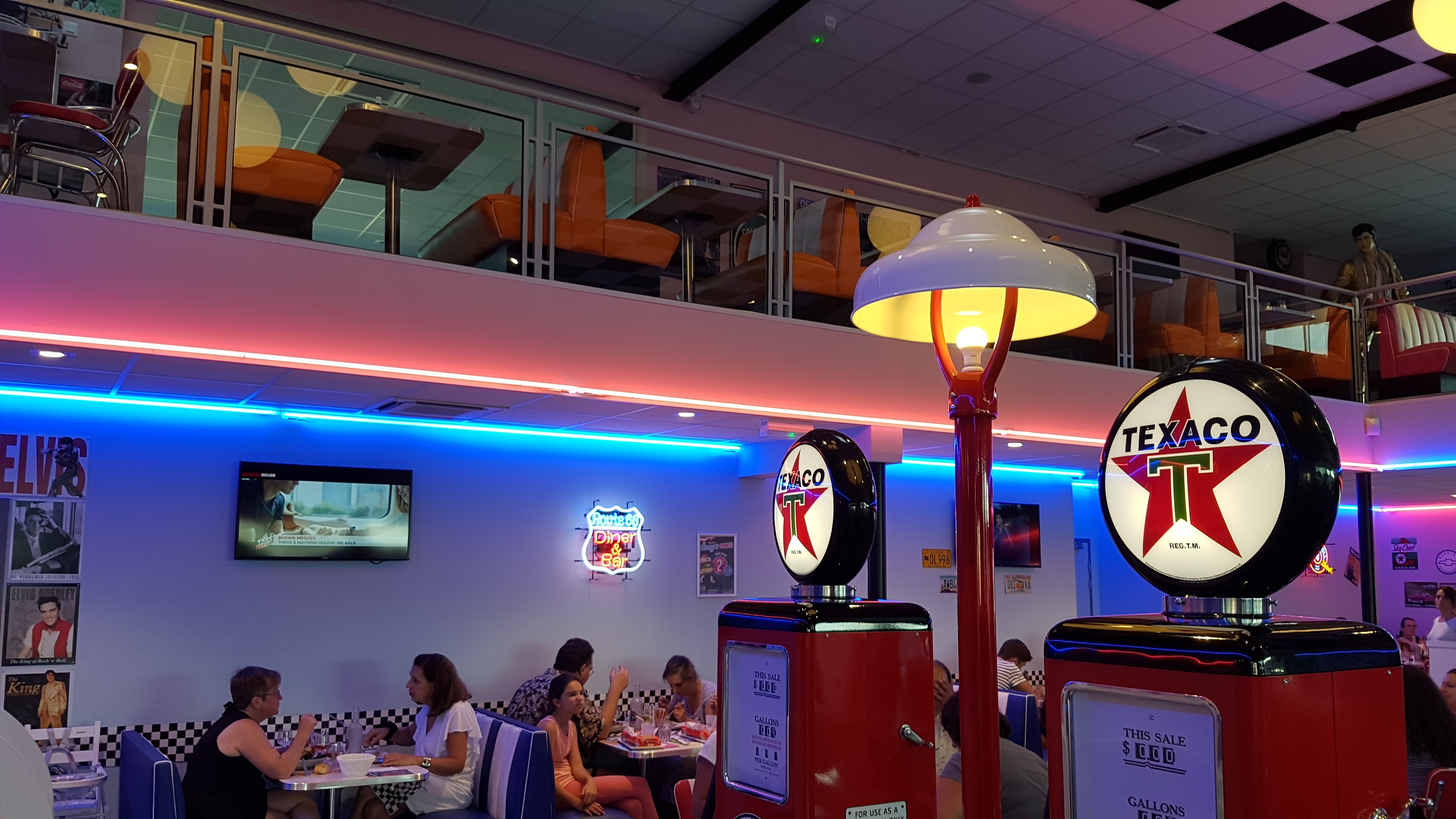 Restaurant DINER style et ambiance USA.Convivial,déco tout à fait américain. Plusieurs choix de plats: hamburgers, hot dog, frites, poisson panés, glaces....ect. Vin américain, soda,bière....