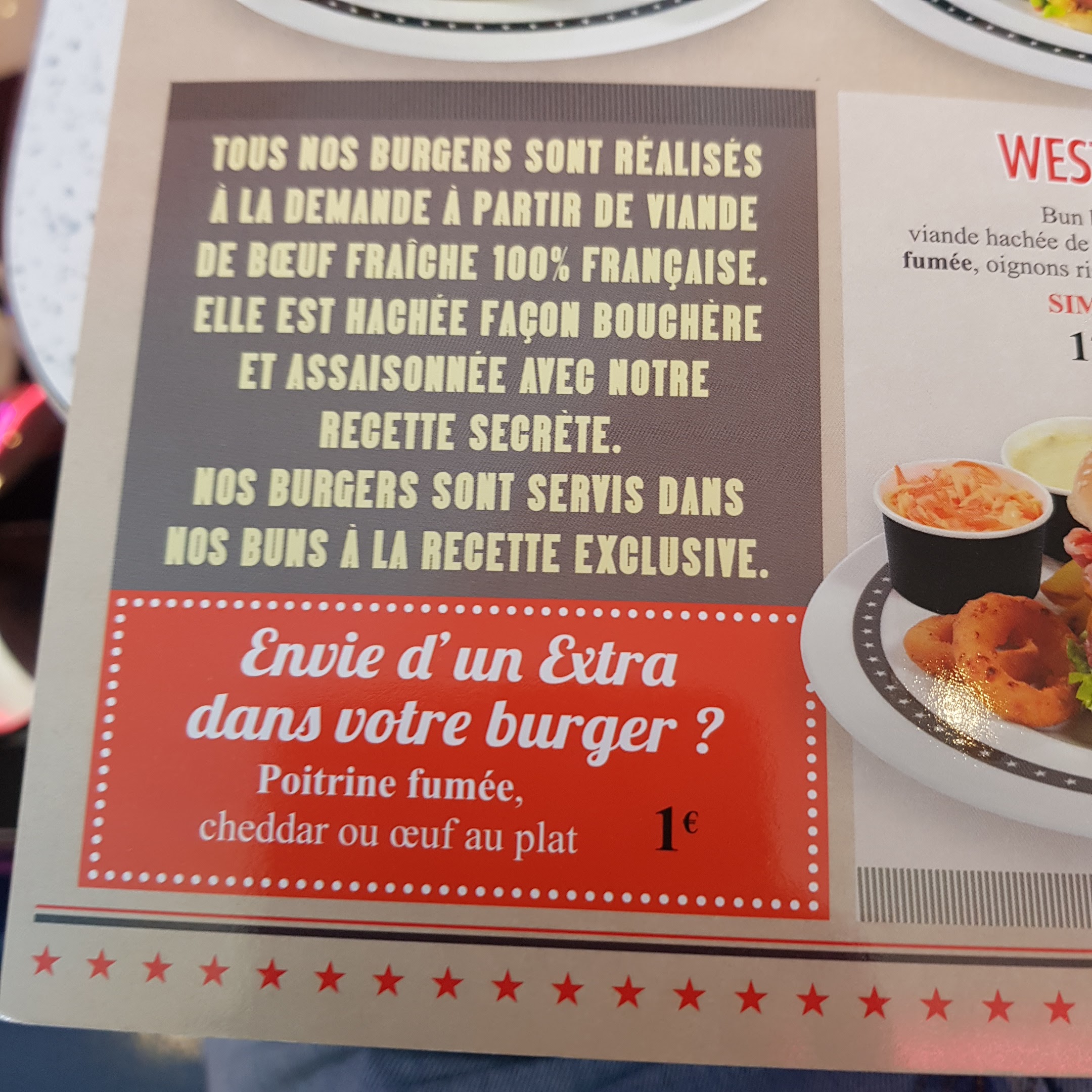 Anniversaire 45 ans de mariage surprise à mes parents. Très bien le patron a bien joué son rôle. Accueil agréable.décor original américain. Prix correct quantité très bien, rien à dire sur la qualité et la cuisson de la viande. Très bonne soirée je recommande sans hésitation, sur 12 personnes aucun commentaire négatif. En plus les jeudi soirs soirée à thème. Je remercie tous le personnel pour la réussite de ma soirée même les personnes que l on ne voit jamais (cuisinier, pâtissier.. )