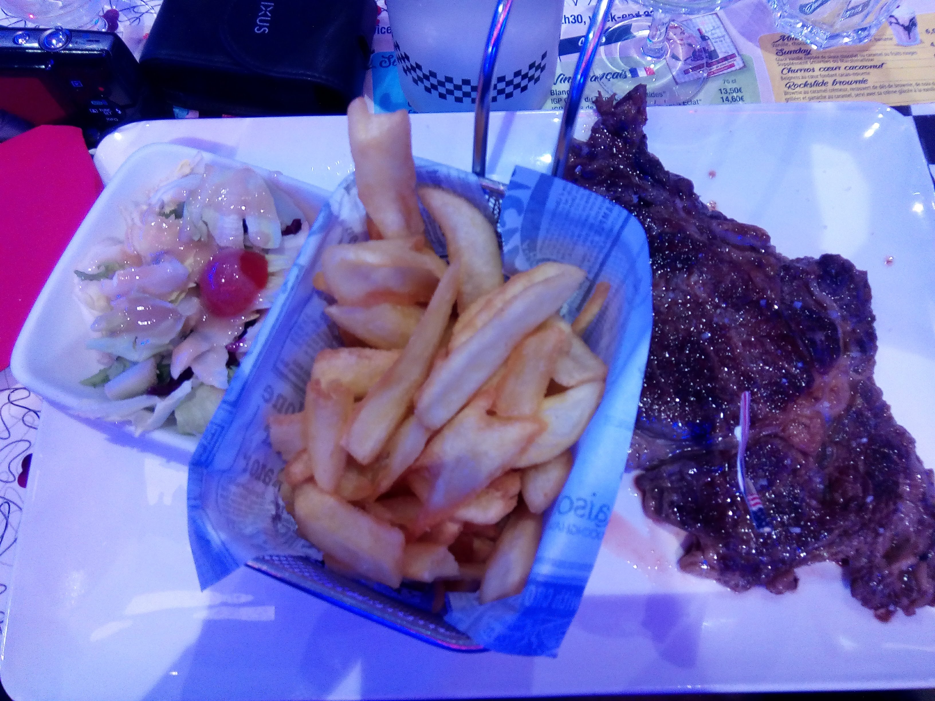 J'ai trouvé la serveuse un peu trop froide à mon goût, ce jour il y avait pas trop de monde donc pas d'excuse on peux prendre un peu plus de temps pour satisfaire.. Service rapide mais manque de pot pour moi, trop rapide, ma côte de boeuf etait froide au premier coup de couteau 10s après être servi ! Quel dommage !! Elle était très bonne cette viande en plus! La salade de mon amie etait en revanche très copieusement dressée !