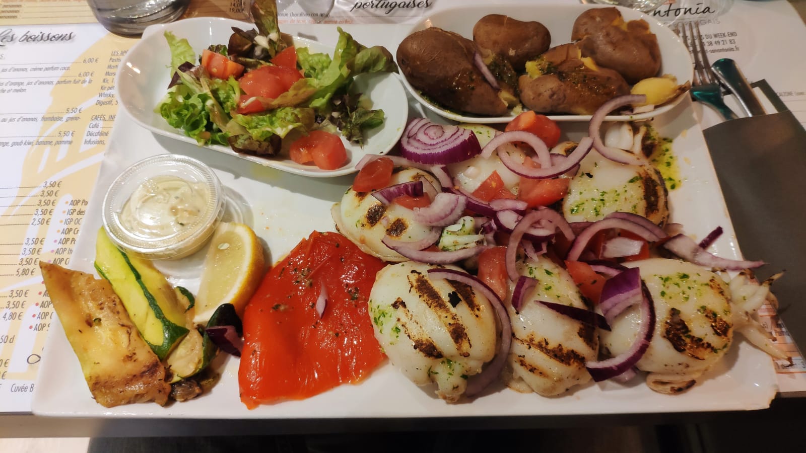 Un vrai régal entrée plat et dessert on y retournera mon mari connaissait mais moi c'était la 1ère fois jme suis vraiment régaler j'ai hâte d'y retourner pensée a réservé !!! Salade de poulpes , Assiette de la mer et pasteis de nata une tuerie 🤗🤗 patron et serveuses, serveur , très simpas 👍👍