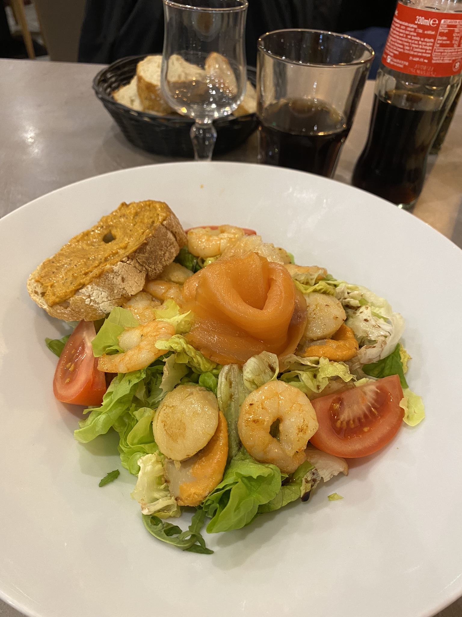 Accueil froid, on est placé devant la porte d'entrée dans un courant d'air alors que le restaurant est presque vide. Notre demande de changer de table est refusée. La serveuse nous dit que toutes les tables sont réservées, mais personne n'est venue tout le long de la soirée. Serveuse ne cache pas sa fatigue ni sa mauvaise humeur. Les plats non assaisonnés, fades. Très grande déception. Et pourtant bon resto il y a quelques mois. Malheureusement, la qualité n'est plus au rendez-vous.