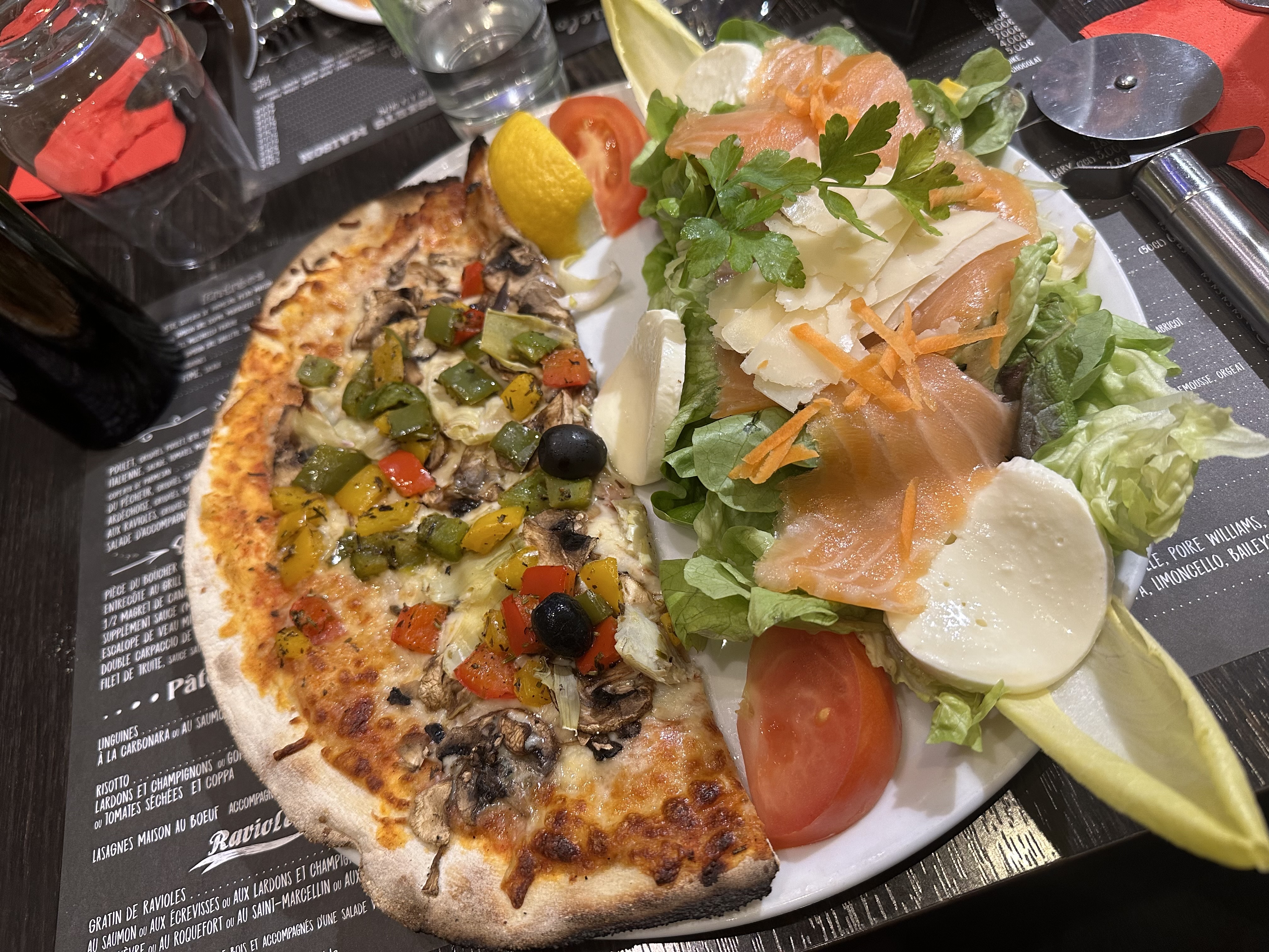 Repas très agréable : accueil sympathique et attentionné même sans réservation, cuisine généreuse et excellente. La formule 1/2 pizza et 1/2 salade est parfaitement équilibrée Très bon rapport qualité/prix. On y reviendra avec plaisir.