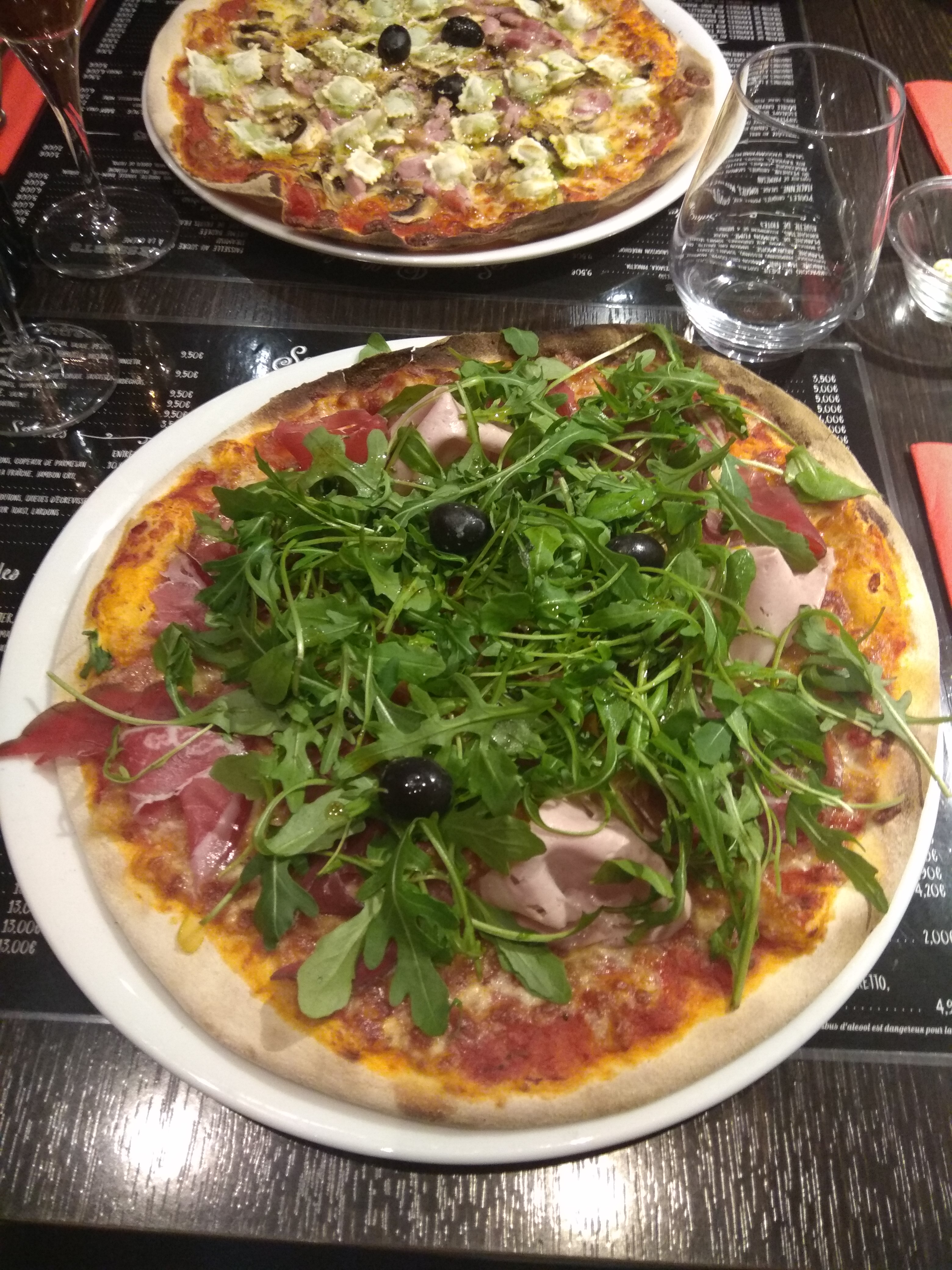 Nous avons pris une pizza chacun, elles sont très bonnes, bien garnies et de qualité. Recettes originales.