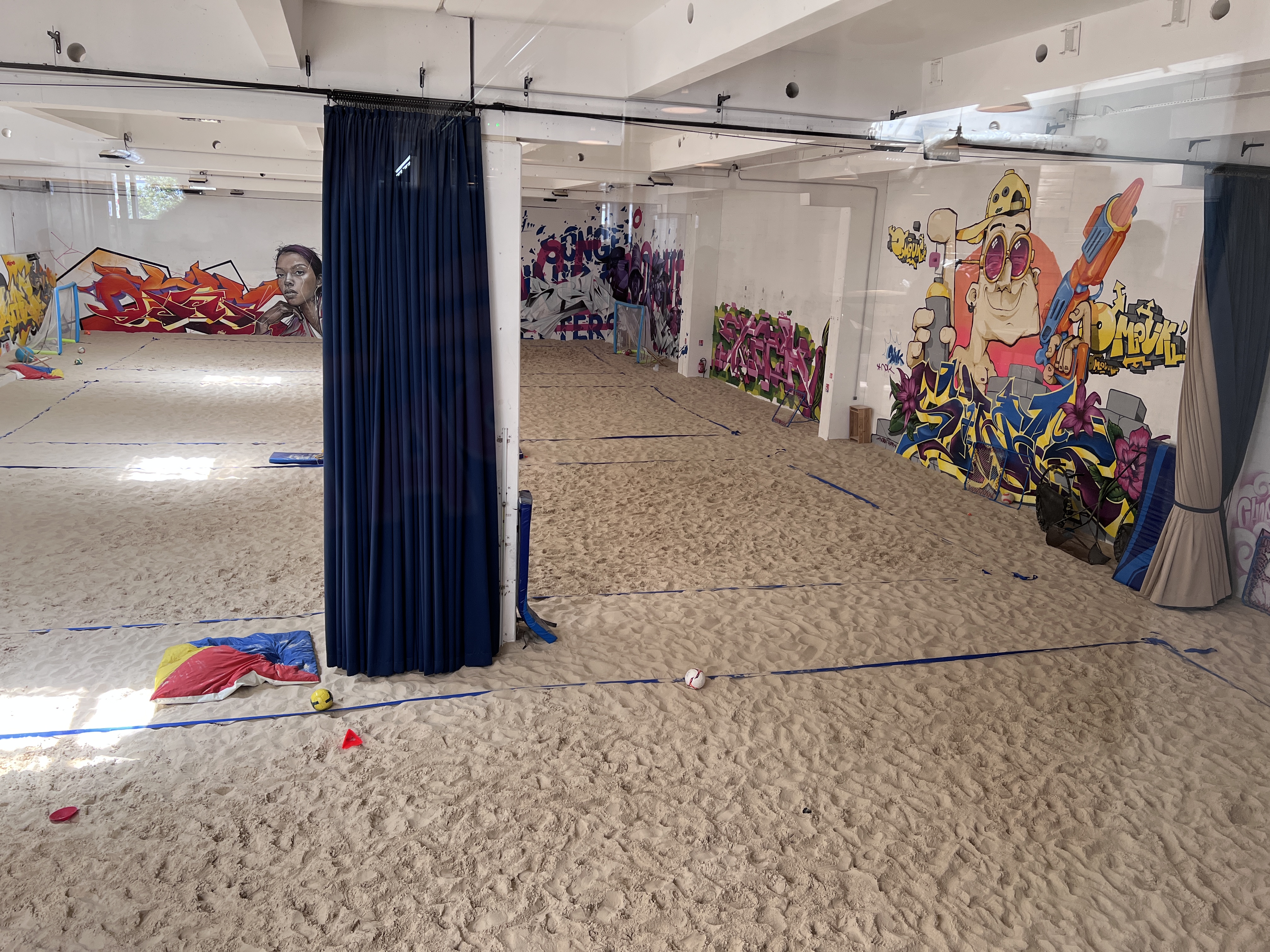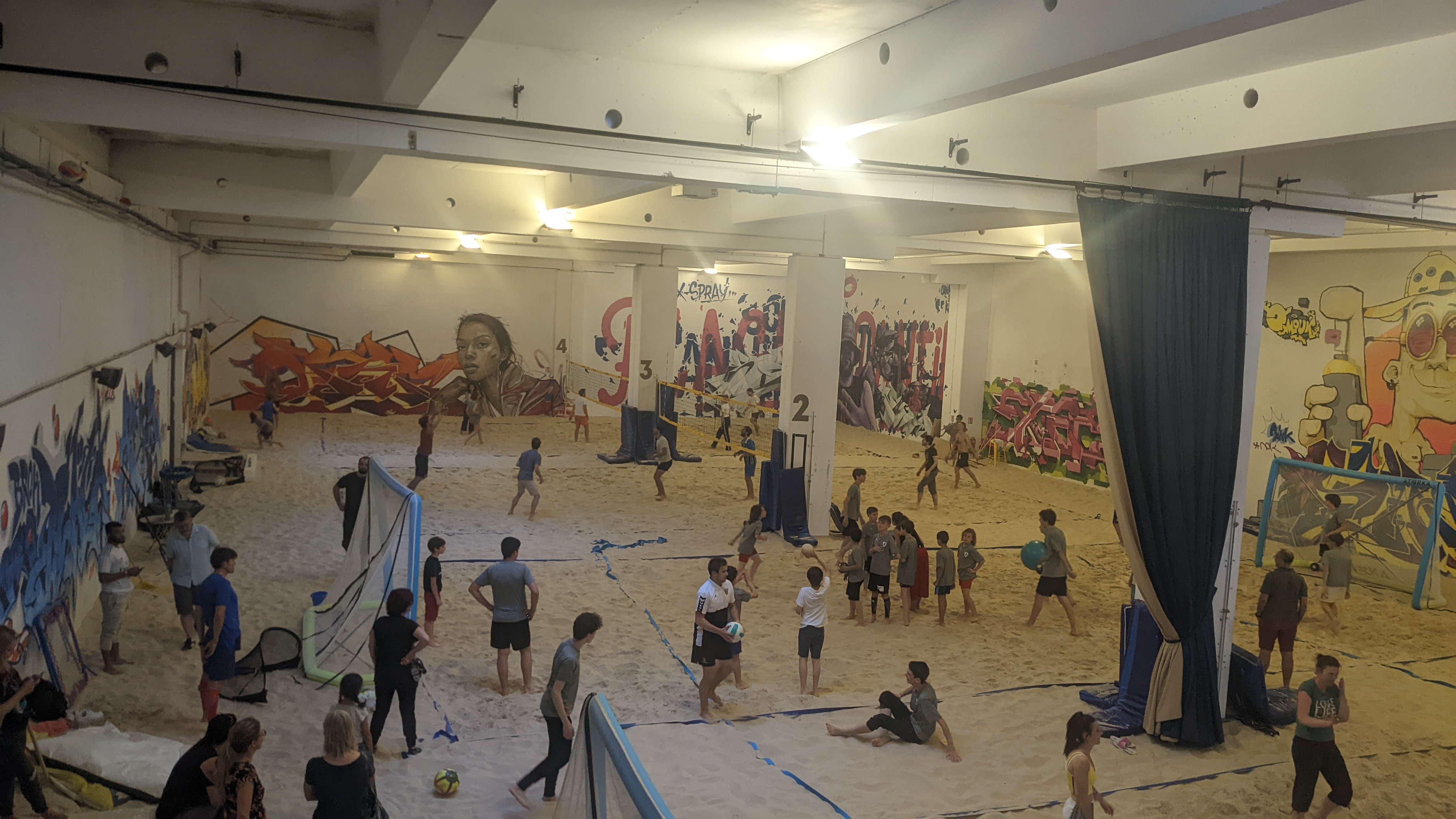 Oh c'était excellentissime !!! C'est spacieux, les vestiaires sont propres, le babyfoot et le billard sont incroyables Le sable est fin, on ne peut pas se blesser, On pouvait faire des balle au prisonnier et touch ball !