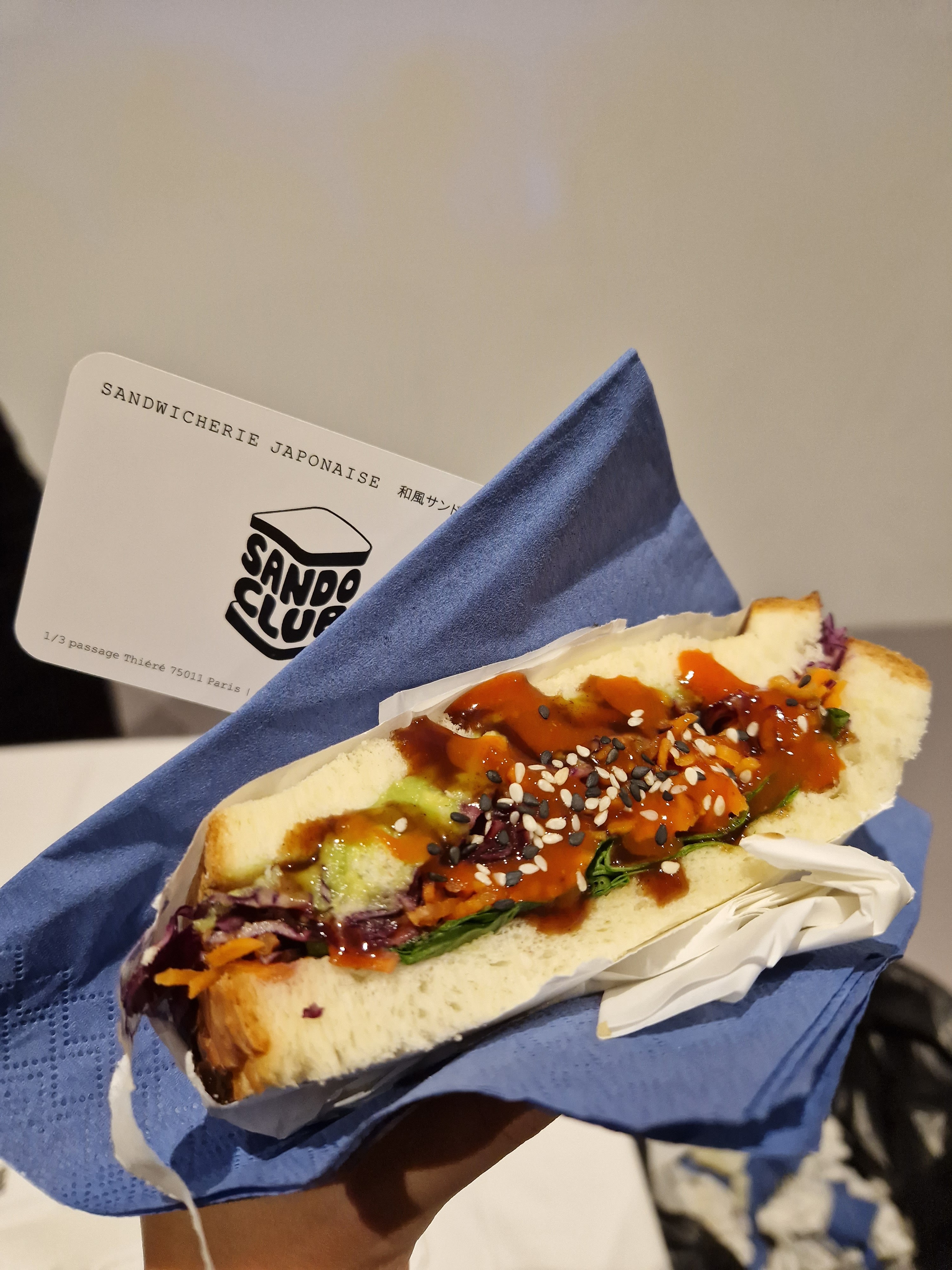 Adepte des sandwichs j’ai d’abord été réticent à tester Sando Club dû à l’épaisseur du pain… Mais à ma grande surprise ce pain brioché est super moelleux et pas du tout étouffant. Sando Club dispose d’une variété suffisante de sandwichs pour que vous en trouviez un à votre goût ! Pour finir, ambiance chill, service aimable, rapport qualité prix au top (j’étais déjà rassasié à la moitié du sandwich) Foncez sans hésiter ✨🥪