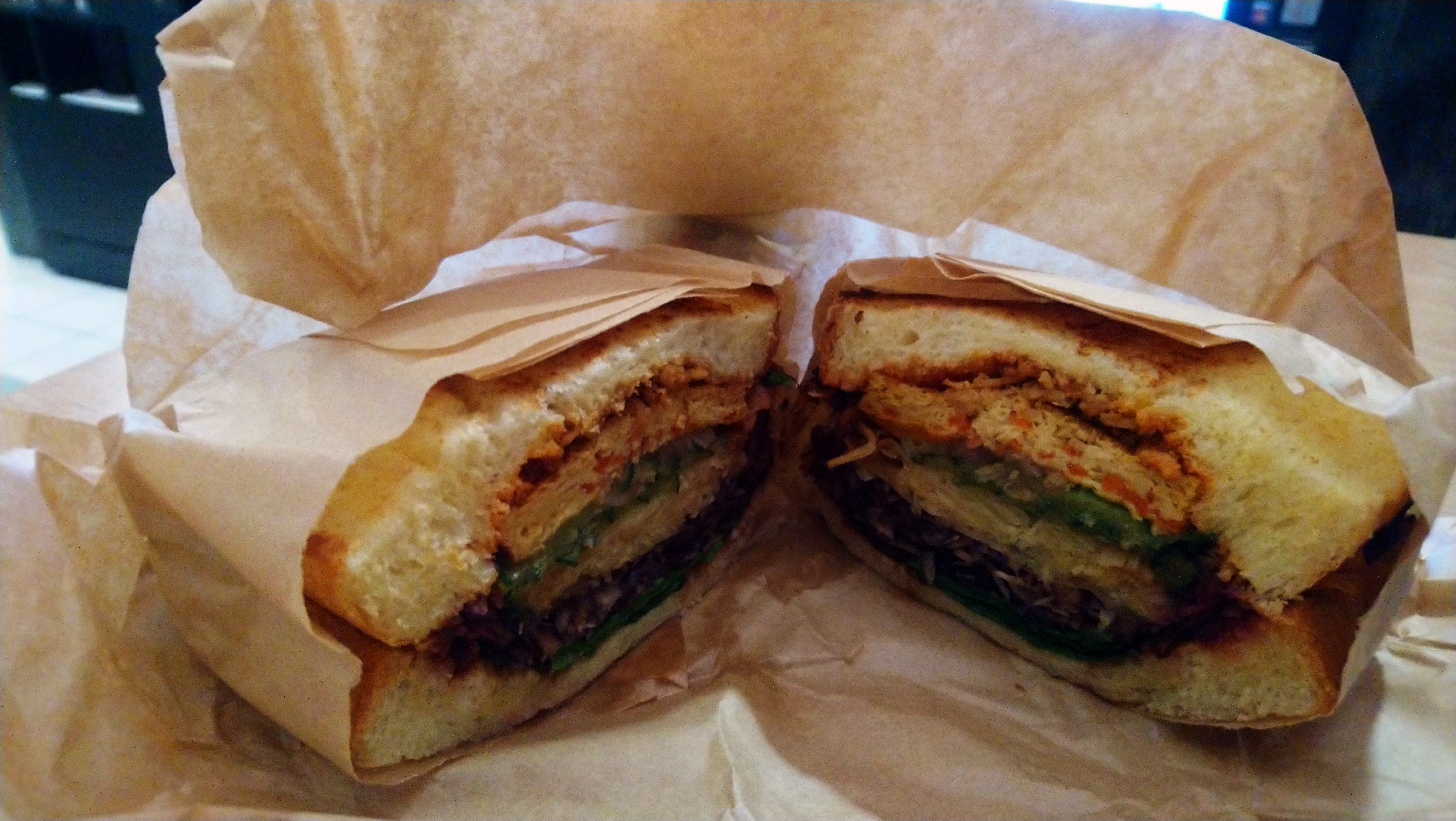 Les sandwichs sont excellents ! Ayant un fort appétit, je ne pensais pas que cela comblerait ma faim mais j’avais tort. Un seul sandwich est suffisant ! Le personnel est très agréable et l’endroit sympa, je recommande ! J’ai particulièrement aimé le sandwich du mois Banh mi, j’espère qu’ils le referont !