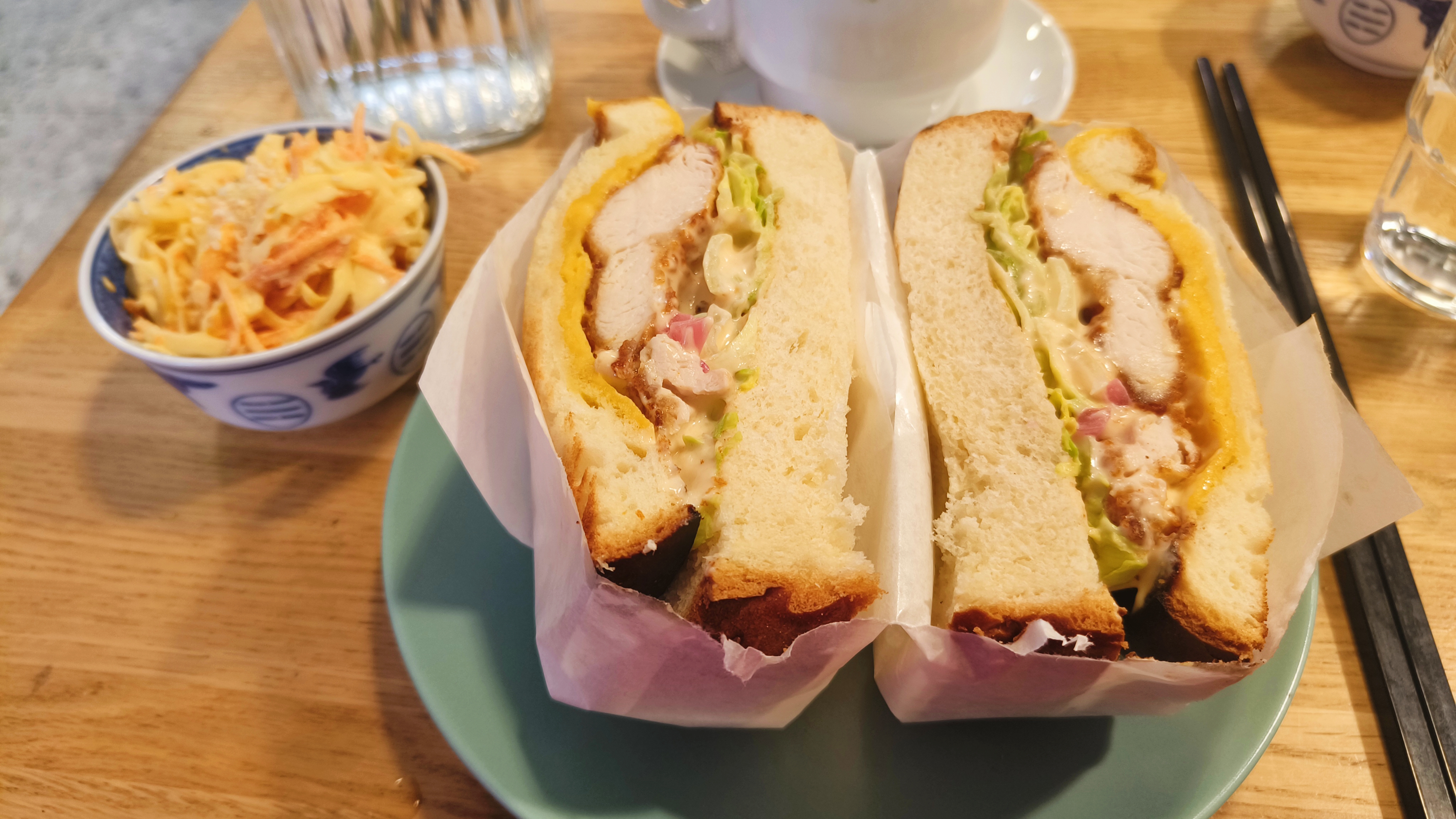 Le sandwich torikatsu est très bon et vraiment copieux. Cadre cosy, la patronne est super sympa, bref on passe un bon moment.