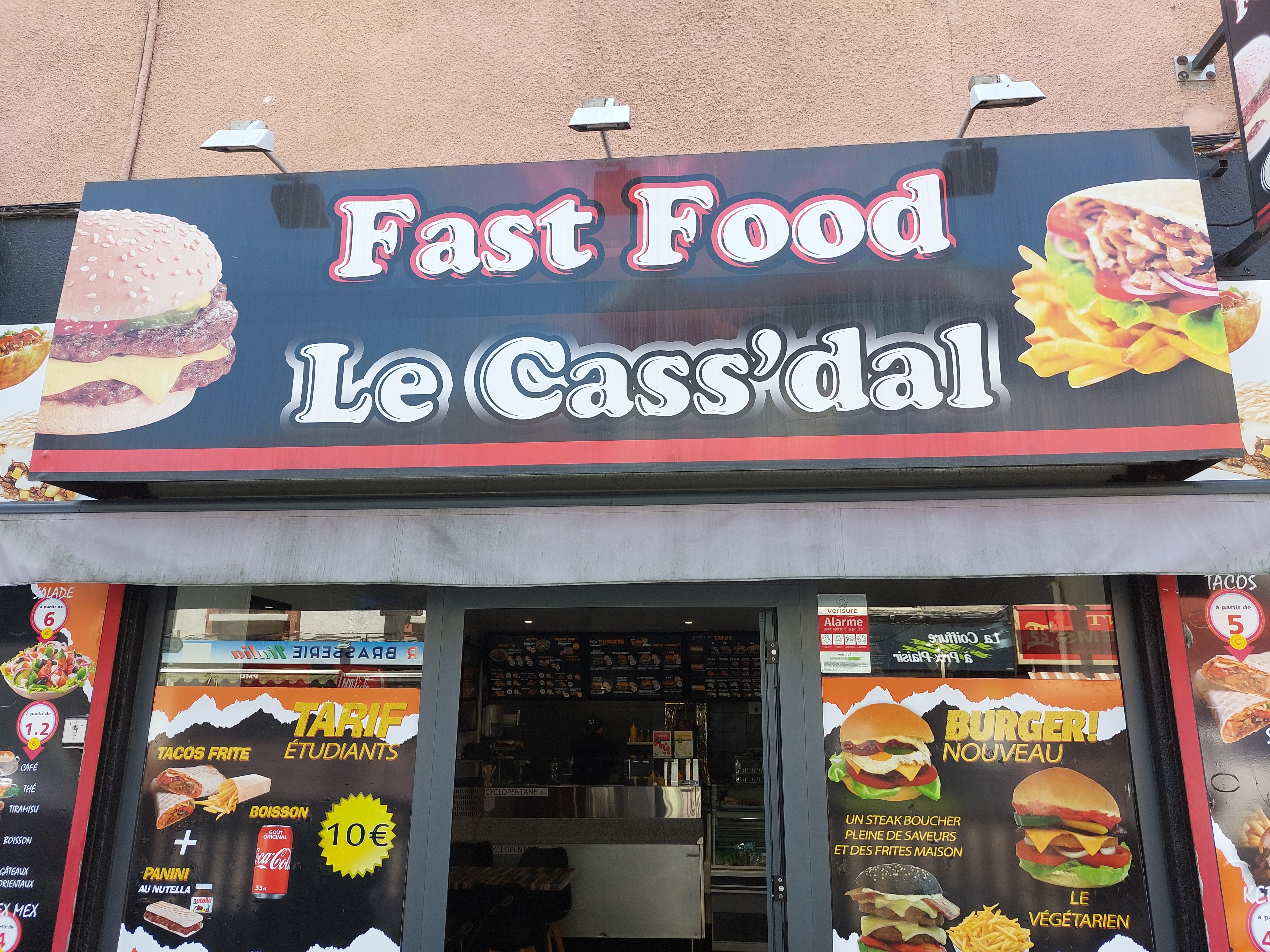 Je recommande vivement le Fast Food Le Cass'dal. Excellente assiette aux deux viandes escalope et kebbab. Personnels très accueillant. Une mention spéciale pour sa gentillesse à Lynda.