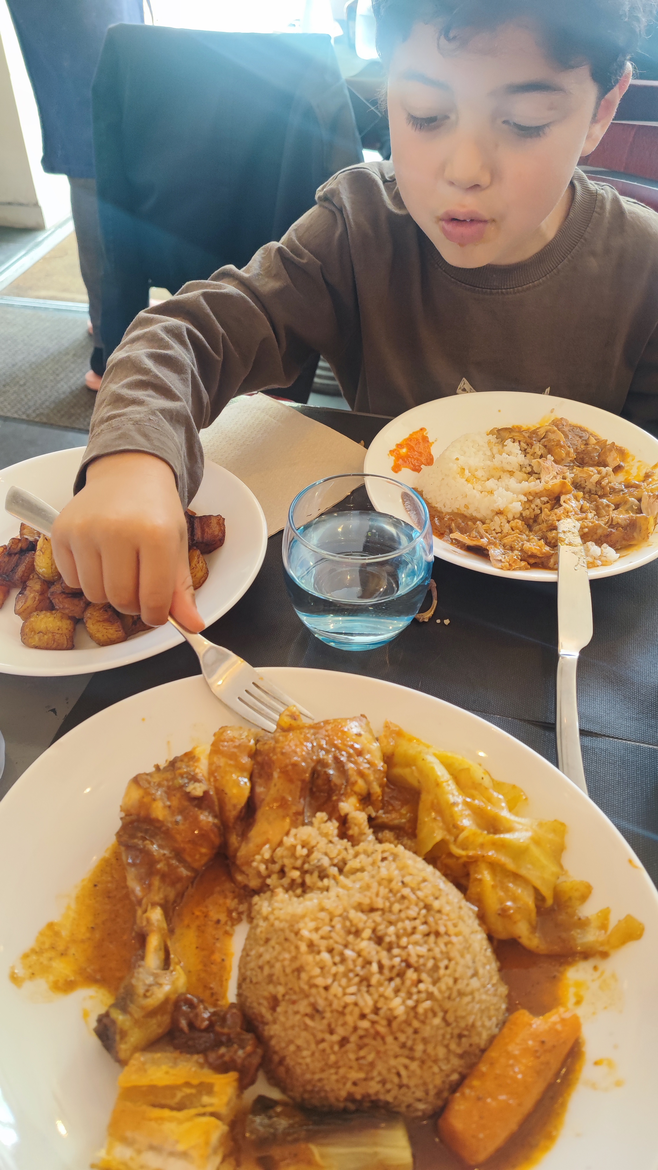 Bonne surprise!! Pause déjeuner imprévue avec les enfants. Un accueil souriant, une personne très disponible malgré qu’il soit seul avec une salle pleine. Le poulet braisé est vraiment fabuleux, le maffé a régaler les papilles de ma fille (pas eu le temps de goûter), je me suis régalée avec le Tiakri ( retour en enfance), et le jus de gingembre excellent. Un vrai régal et plaisir pour toute la famille. C’est un budget ( pour moi) mais ça vaut vraiment le coût.