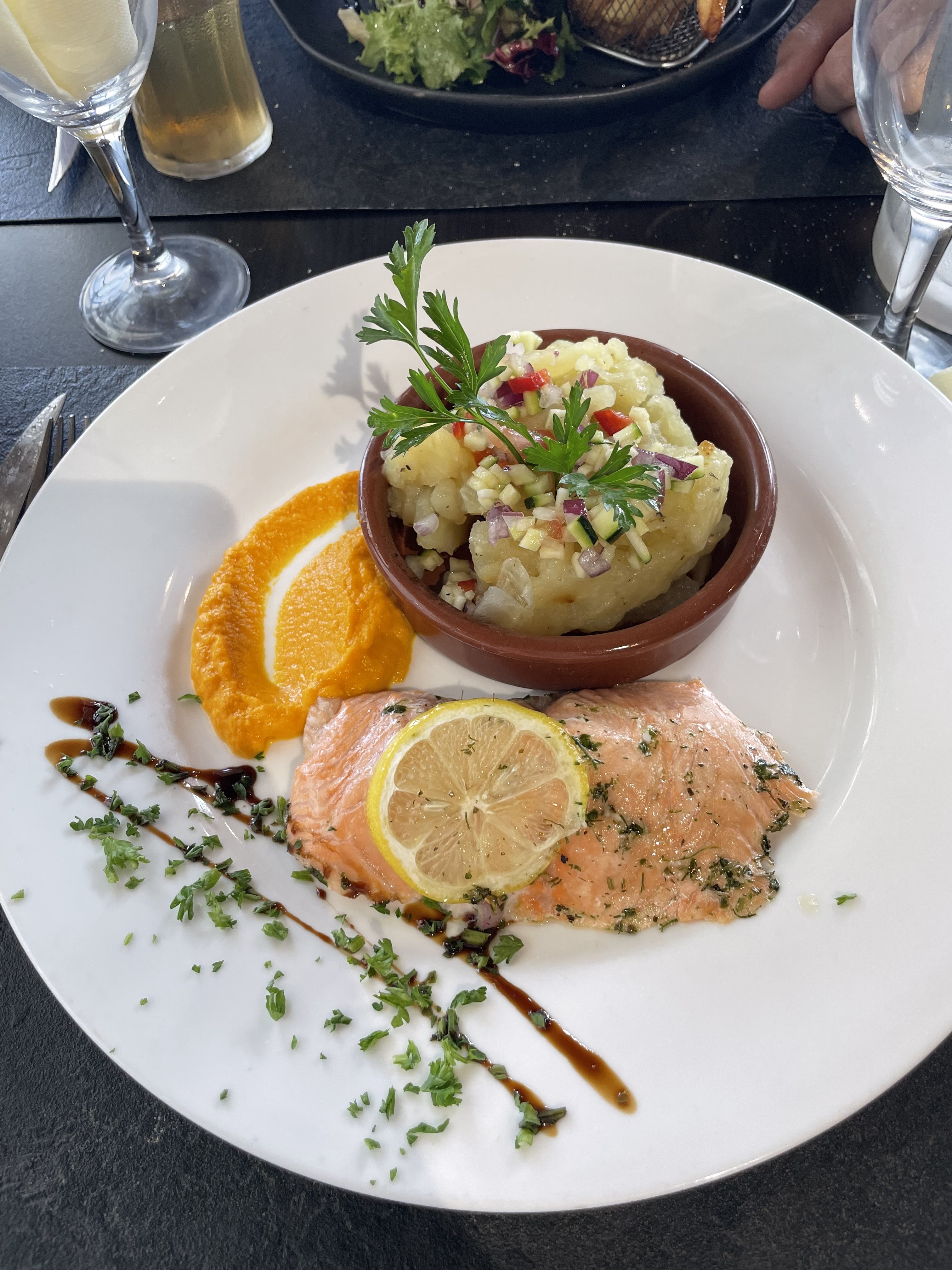 je n'y ai pas mangé, juste boire un verre en terrasse. le personnel est super accueillant et très souriant.