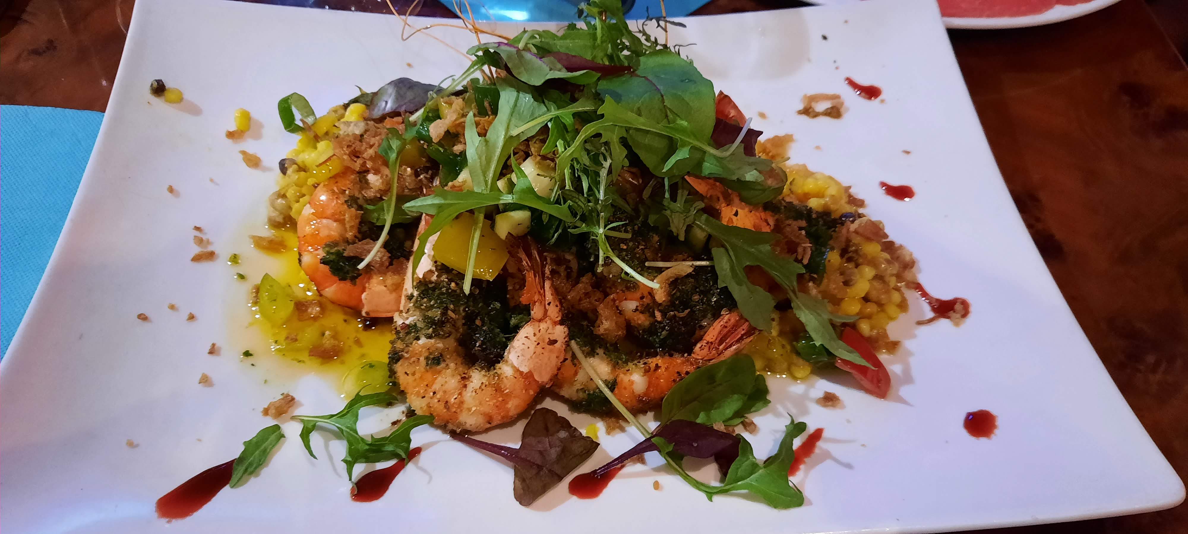 Serveuse gentille mais les plats n'étaient pas bon ,viande brûlée, crevettes secs, présentation très simple... bref nous sommes partis sans dessert,sans café. Dommage. Merci pour votre réponse mais ce n'était pas exactement comme ça ; La viande était brûlée,nous avons montré le plat , la serveuse l'a enlevé et après 5min.on nous a servi la même assiette mais ..avec les frites chaud c 🥴