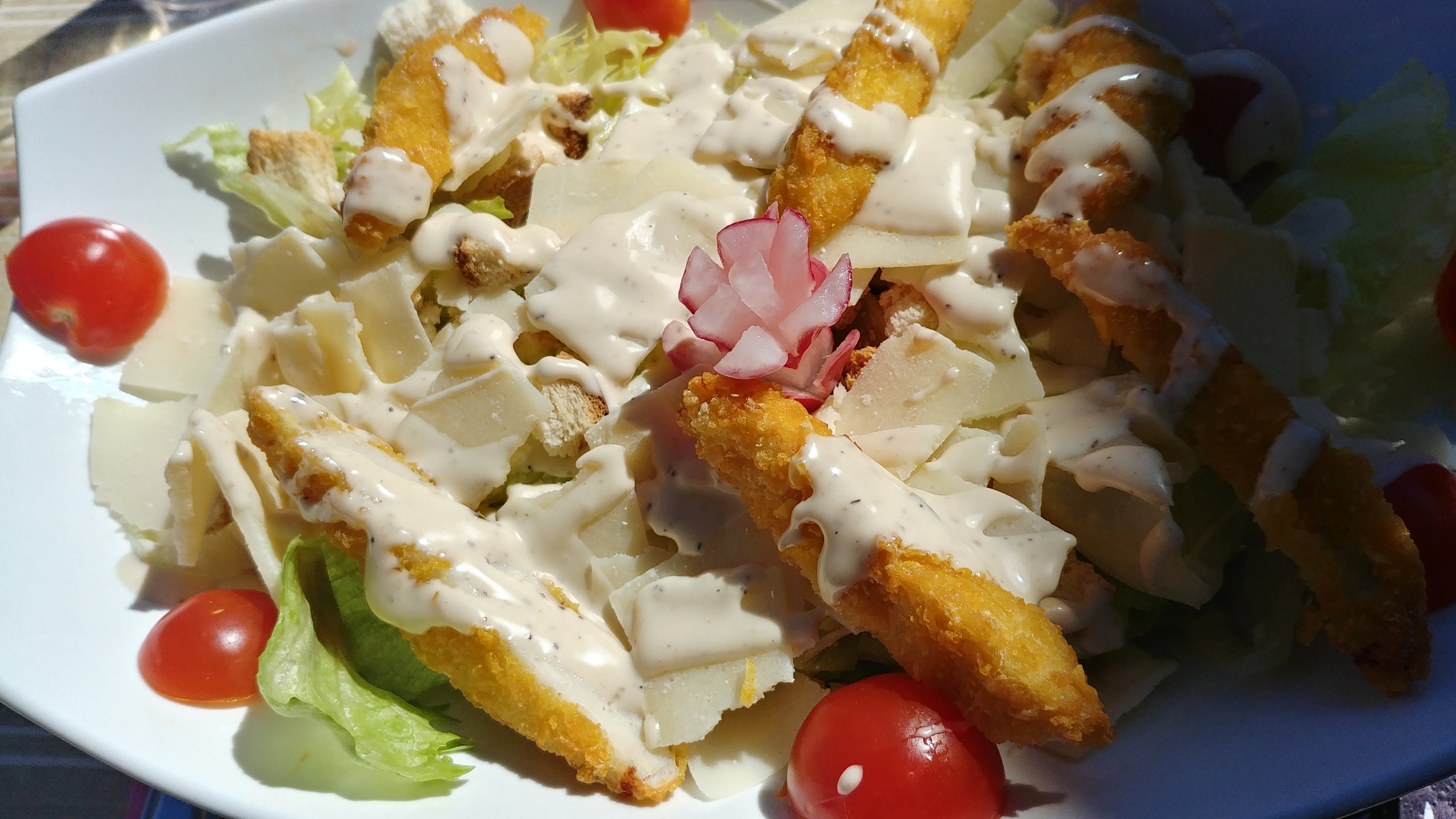 Salade normale pas transcendante. Par contre mon amie a pris une entrecôte salade frite, la viande pleine de nerfs, à la place des frites une pomme de terre avec très peu de sauce sans goût et la poignée de salade complètement cuite inmangeable. Le pompon une bouteille d'eau pétillante faite sur place avec machine à gaz facturée 4€ 50cl. La remarque faite même pas son café offert.