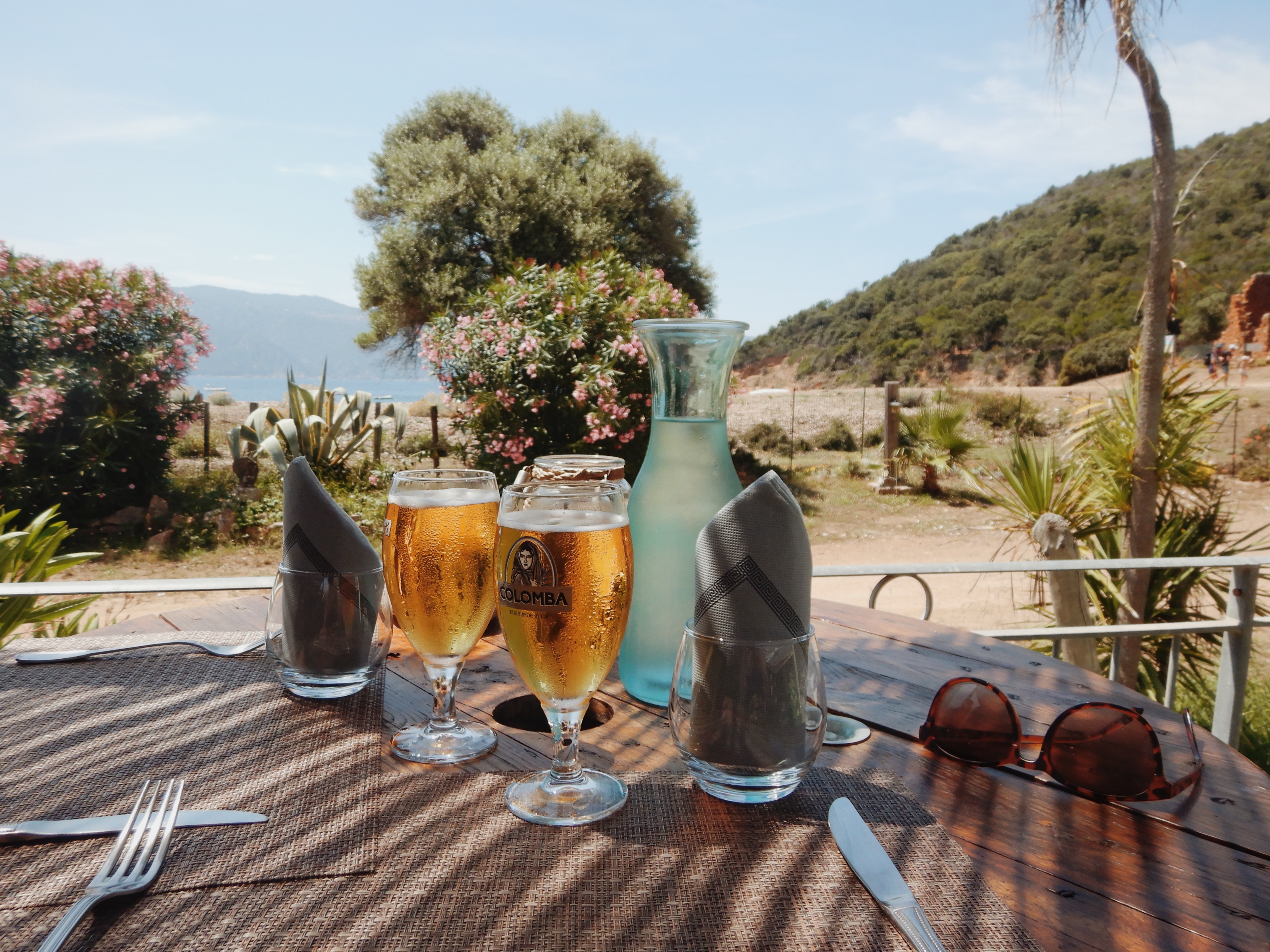 Rosé frais avec glaçons et salade du berger, et moelleux à la châtaigne ... le tout face au Golfe de Porto , et quelques beaux lauriers roses en fleurs .... bref , un pur moment de plaisir et de détente en très bonne compagnie