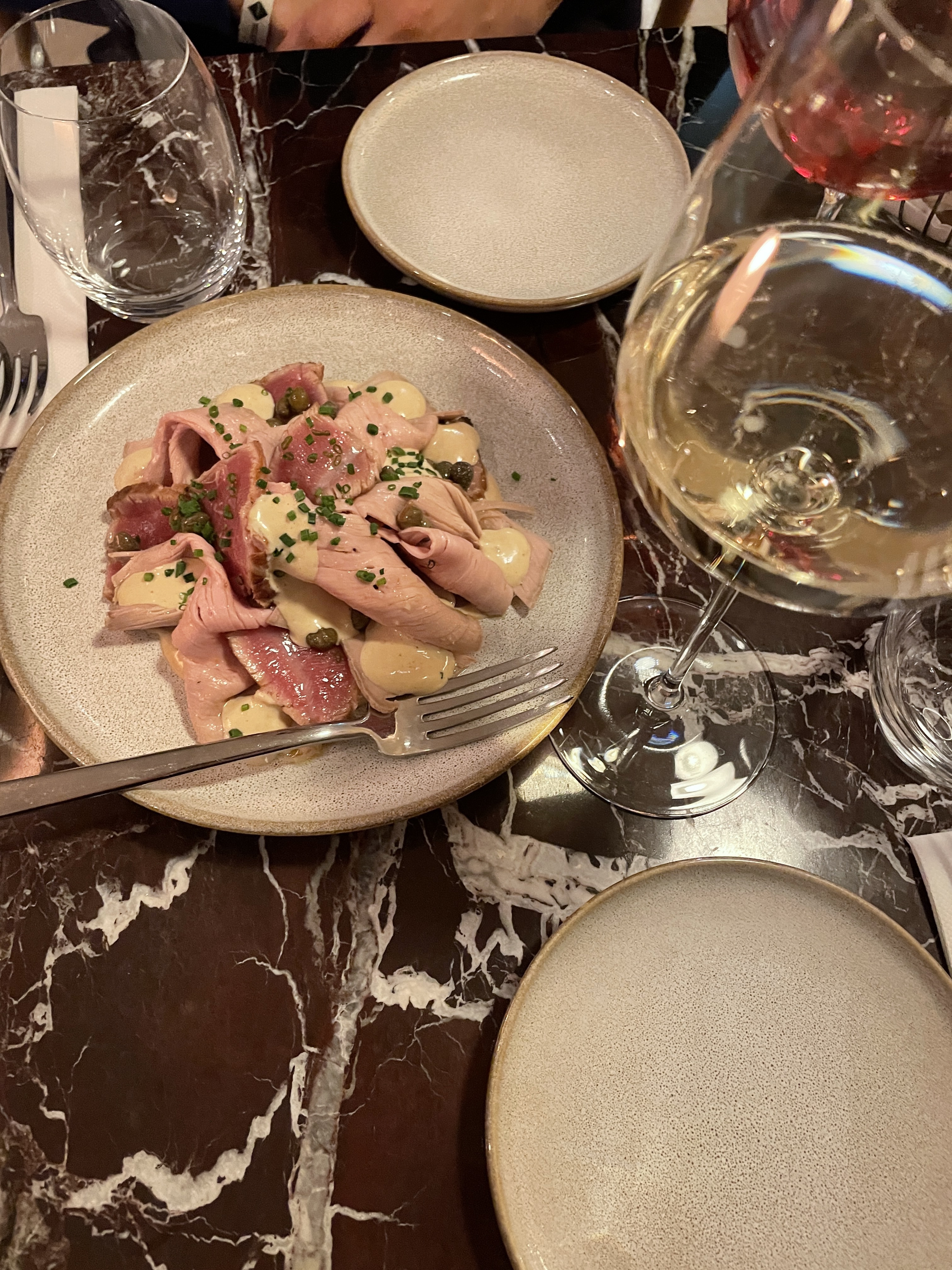 Ca partait super bien avec un délicieux Vitello Tonnato e Pappa al pomodoro plat hyper simple mais que les italiens savent porter à la perfection. Grosse déception par contre sur les pâtes totalement quelconques et du coup à un prix assez indécent.
