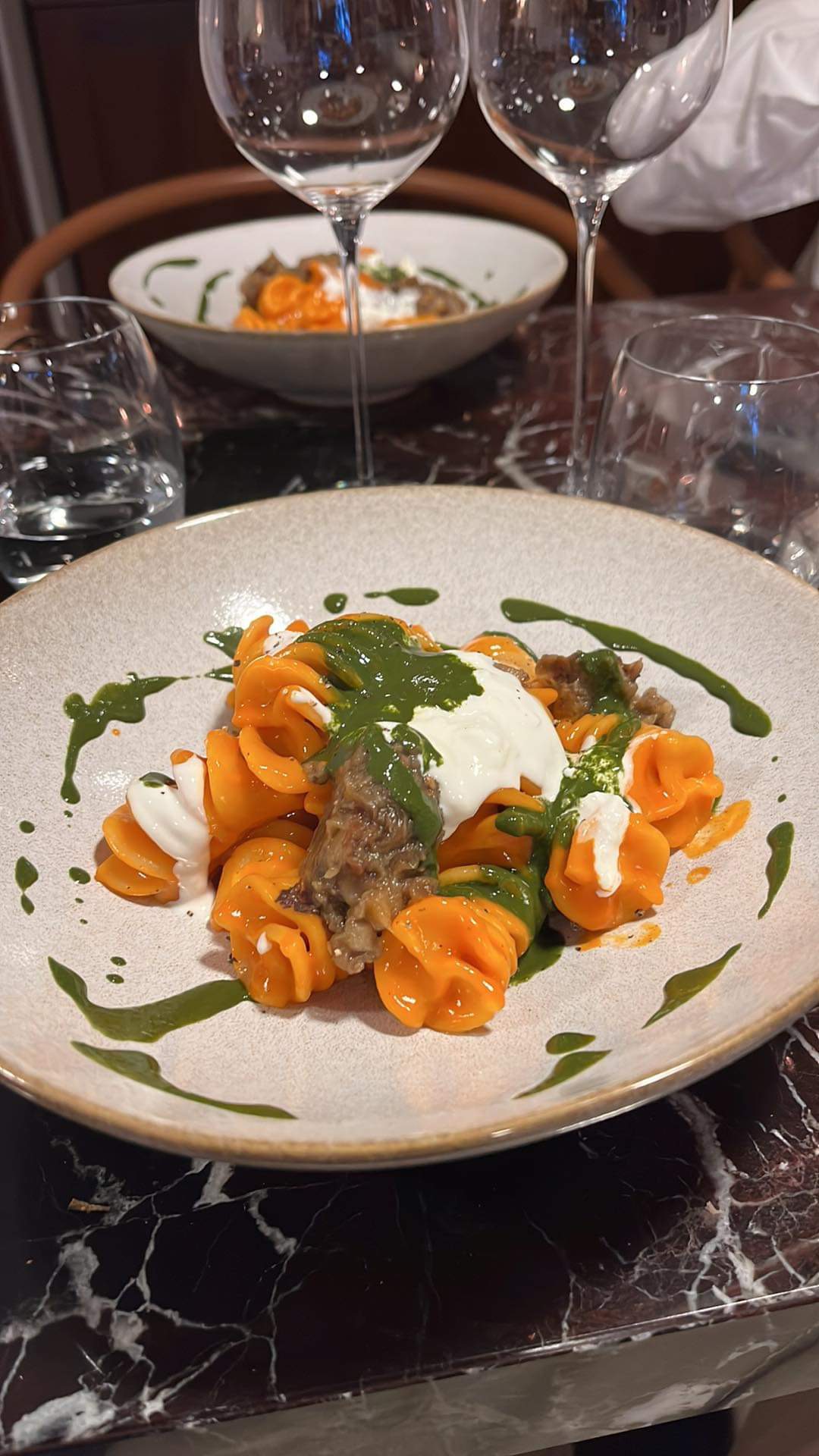 Nous sommes venus en groupe pour tester ce resto qui nous faisait de l’œil… déception ! Les plats sont ridiculement petits, 6 raviolis à 22€, ils sont bons mais rien d’exceptionnel. Les plats de pâtes sont servis si lentement pour si peu de quantité. Nous avons l’habitude de dépenser pour bien manger sans problème mais cette fois c’est trop ! Le vin est également cher. Une fois, par 2.