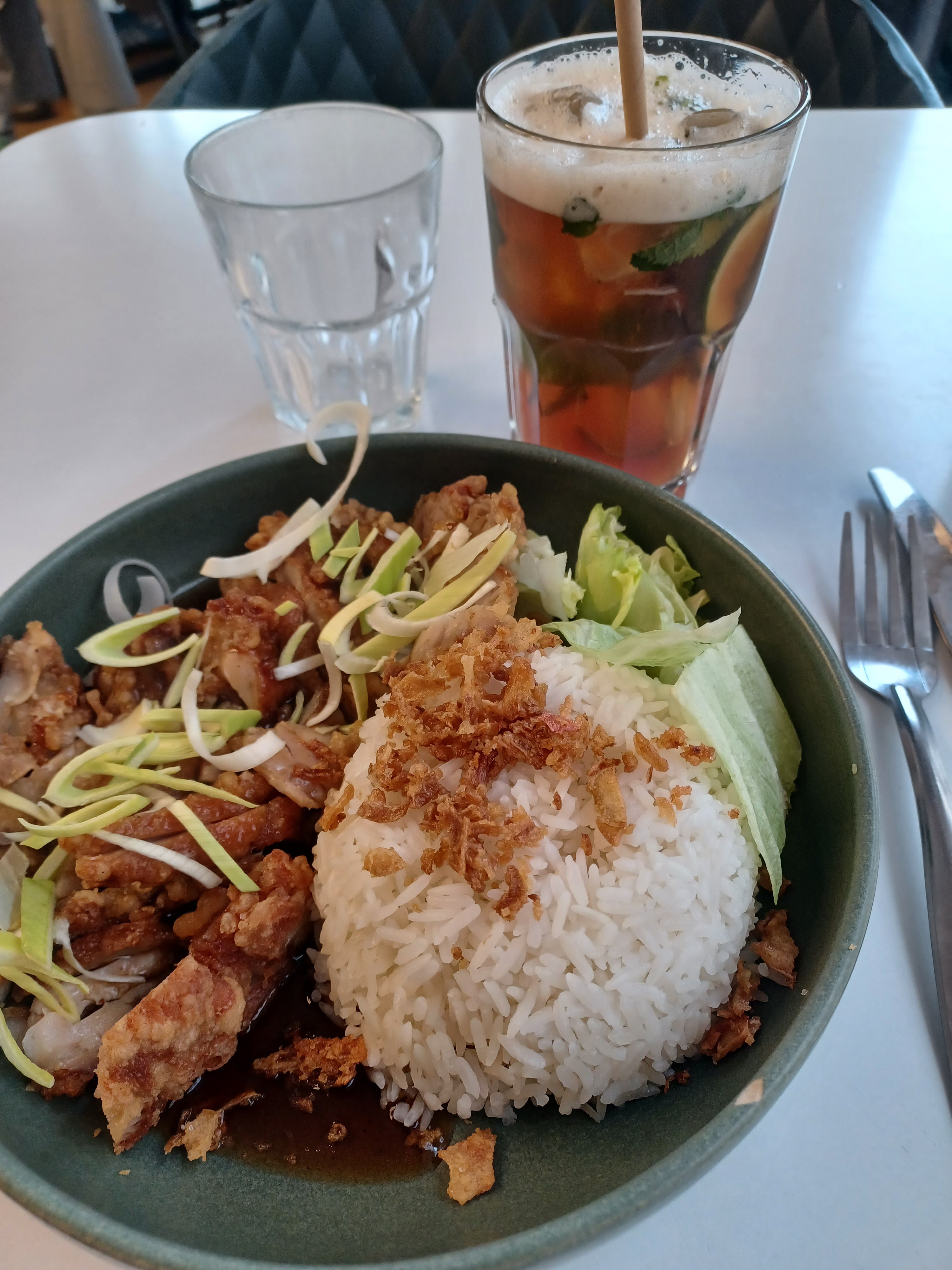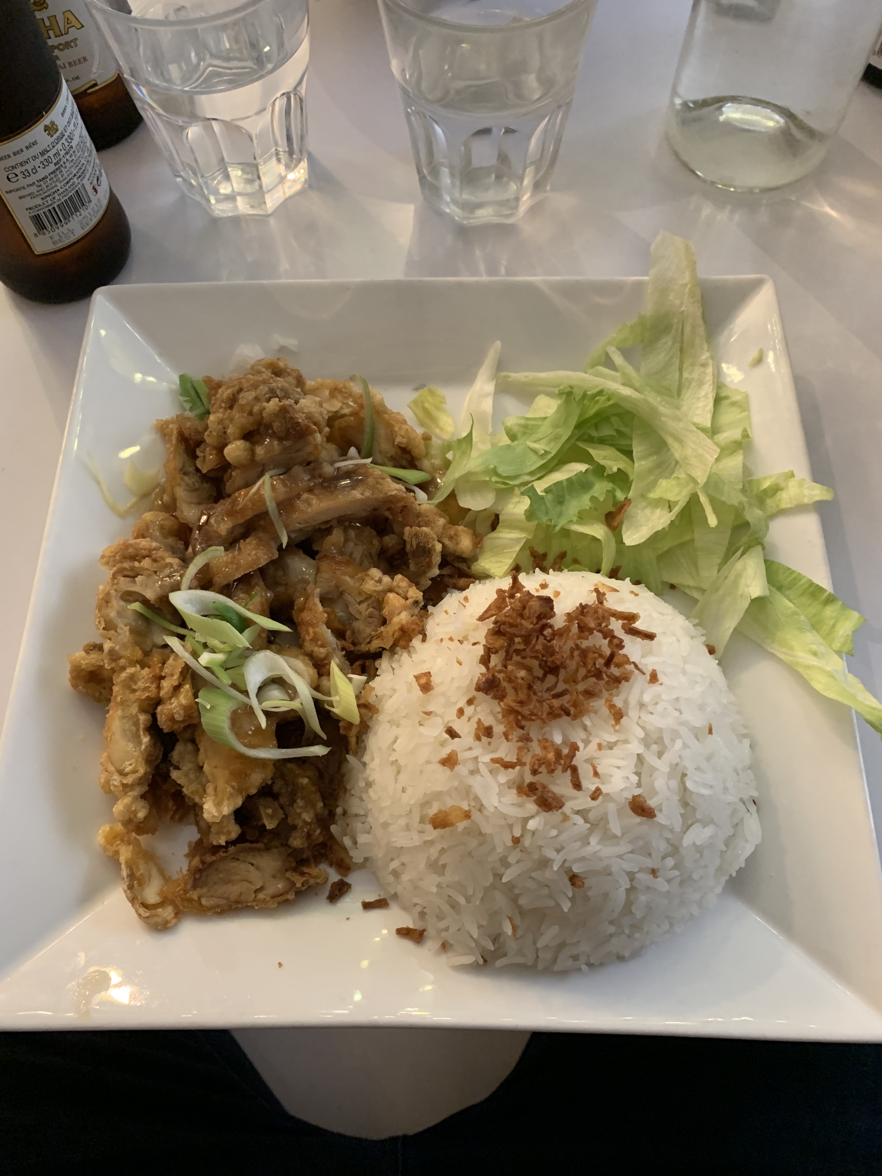 Très bon restaurant Thaïlandais ! Étant moi même allé en Thaïlande pendant près de 2 mois et demi, j’ai été ravi de retrouver les plats typiques du pays dans ce restaurant à Bordeaux. Nombreux choix de plats dont le fameux Pad Thaï ! Mon préféré reste le Nua Thaï (ou bien bœuf basilic). Le plat en photo est le Nasi Ayam (plutôt plat indonésien). Je conseille pour le dessert, le riz gluant à la mangue (même si ce n’est pas exactement le même qu’en Thaïlande, il reste très bon ! (Pas de lait de coco dans celui là mais de la crème anglaise d’après la carte)