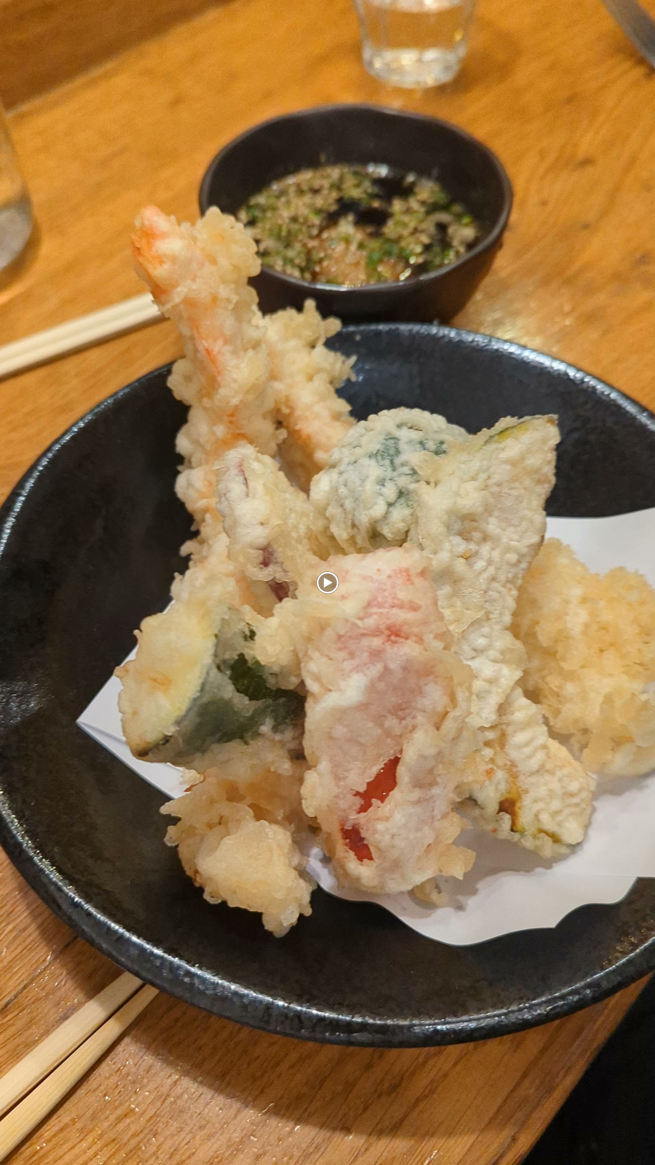 Expérience mi-udon. J'ai commandé le tempura udon chaud, et tous les tempuras de légumes sont amers sauf la patate douce, eh bien, je veux dire, c'est une « patate douce ». Brocolli amer. Le concombre est également amer, etc. La trempette était correcte et les udon sont bien moelleux mais payer 22 € avec toute l'amertume n'en vaut pas la peine