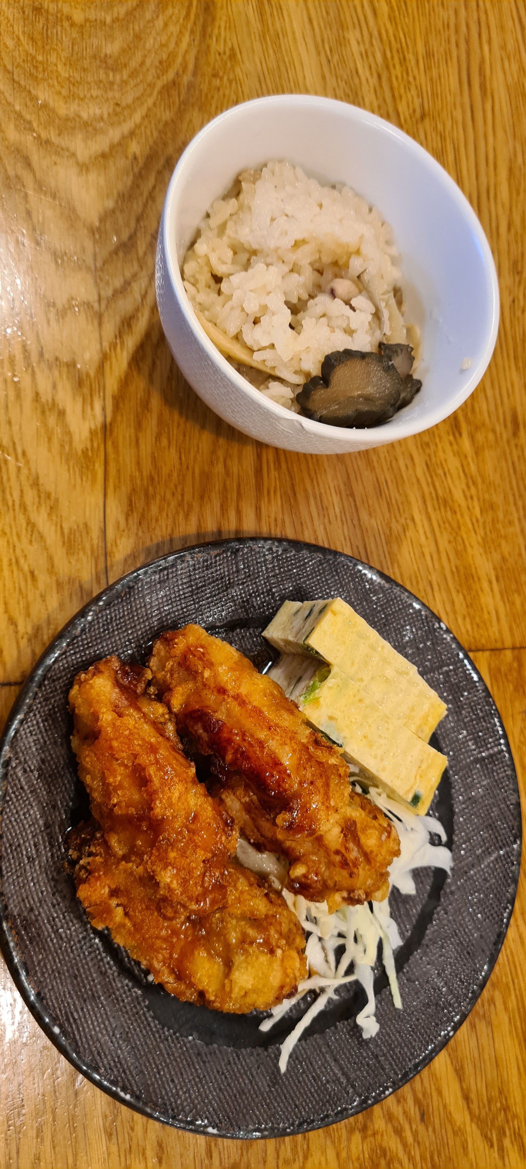 Un de mes petits restaurants favoris. L’ambiance est sympa, on est dépaysé avec la déco et l’ambiance de fond. J’ai pris un karaage et un des classiques, le tenpura avec un petit extra oomori. Les ebiten dans la soupe sont vraiment super, c’est vraiment a tester.