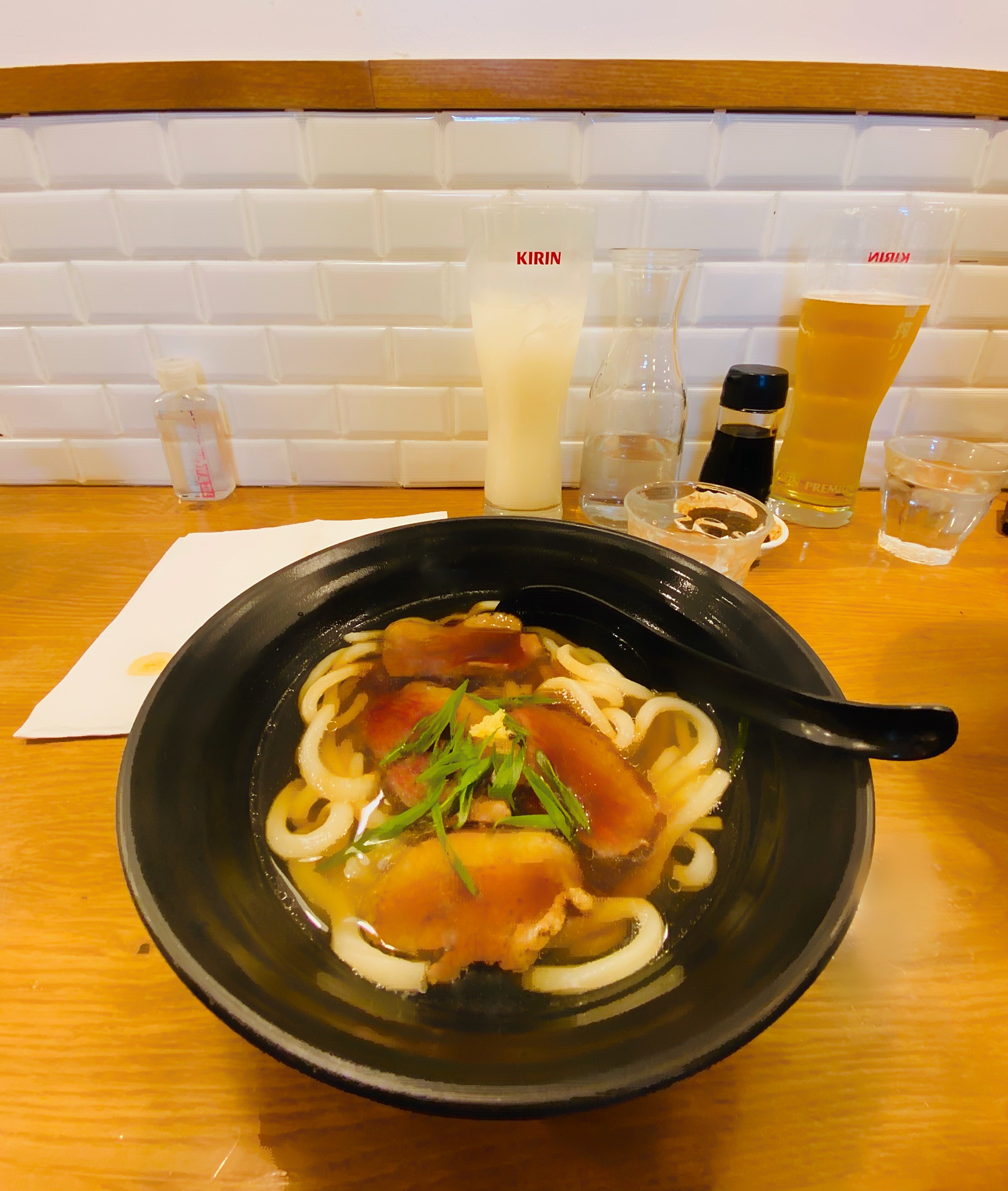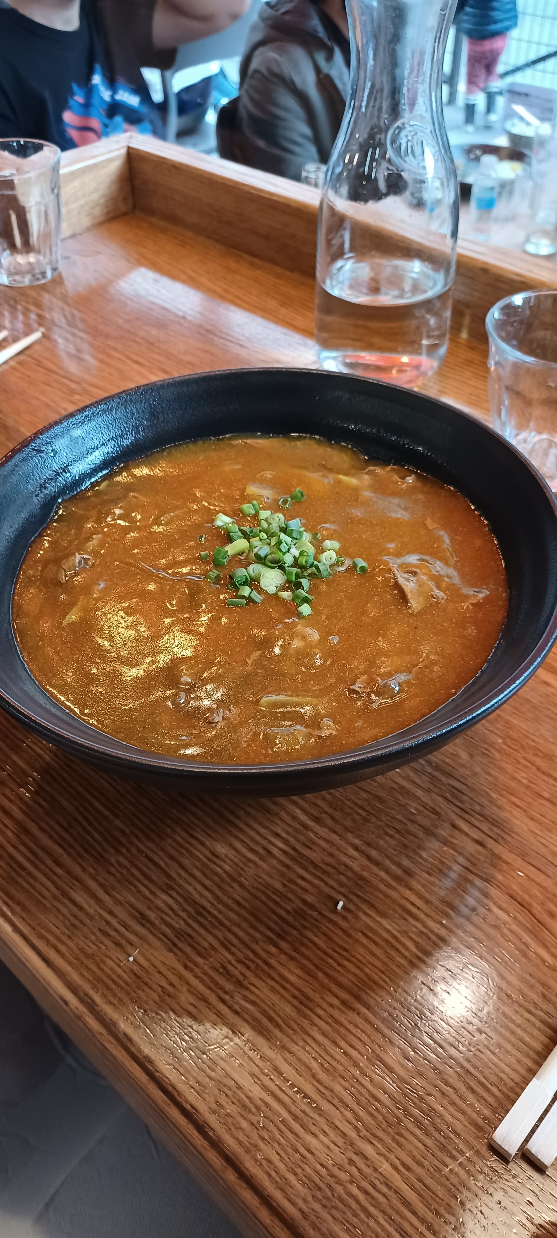 Pour les Udon un des meilleurs !! Ne pas hésiter au contoir, avec vu sur la cuisine, qui donne un bon aspect de la préparation. En photo udon bouillon épais au curry !! Super top. Bref ne pas hésiter et attendre dans la queue fait partie de l’aventure... (One of the in town for Udon...)