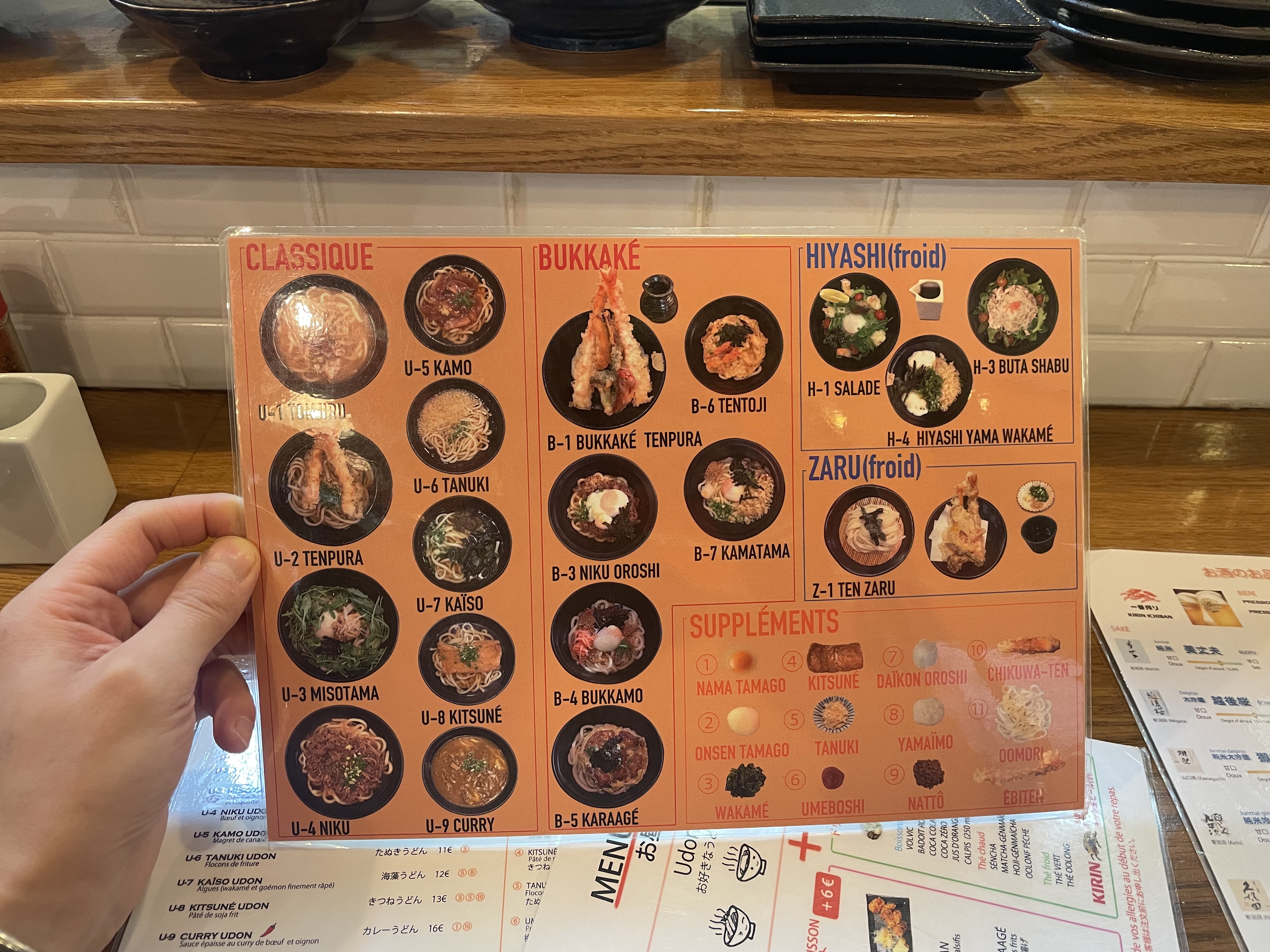 Je suis arrivé là-bas par hasard car c'était l'un des rares restaurants ouverts aussi tôt. Il s'avère que j'ai trouvé un joyau, dès que je me suis assis, une énorme file d'attente s'est formée à l'extérieur - apparemment, ils sont assez populaires à Paris et je comprends pourquoi. L'udon était parfait, je dois revenir et essayer le reste des options !
