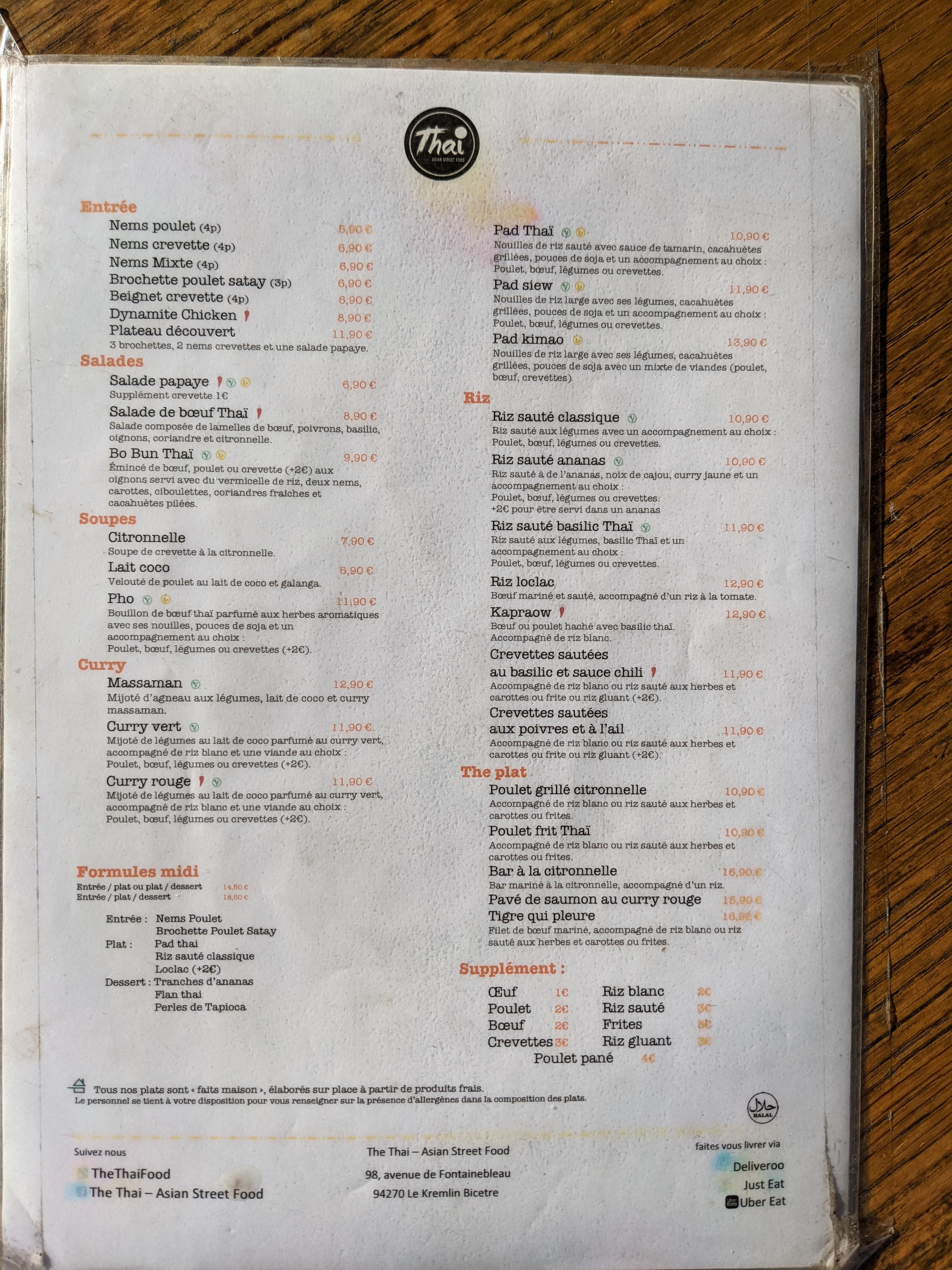 Service très rapide, et très bon. Je recommande le curry vert. Attention c’est un peu épicé :)