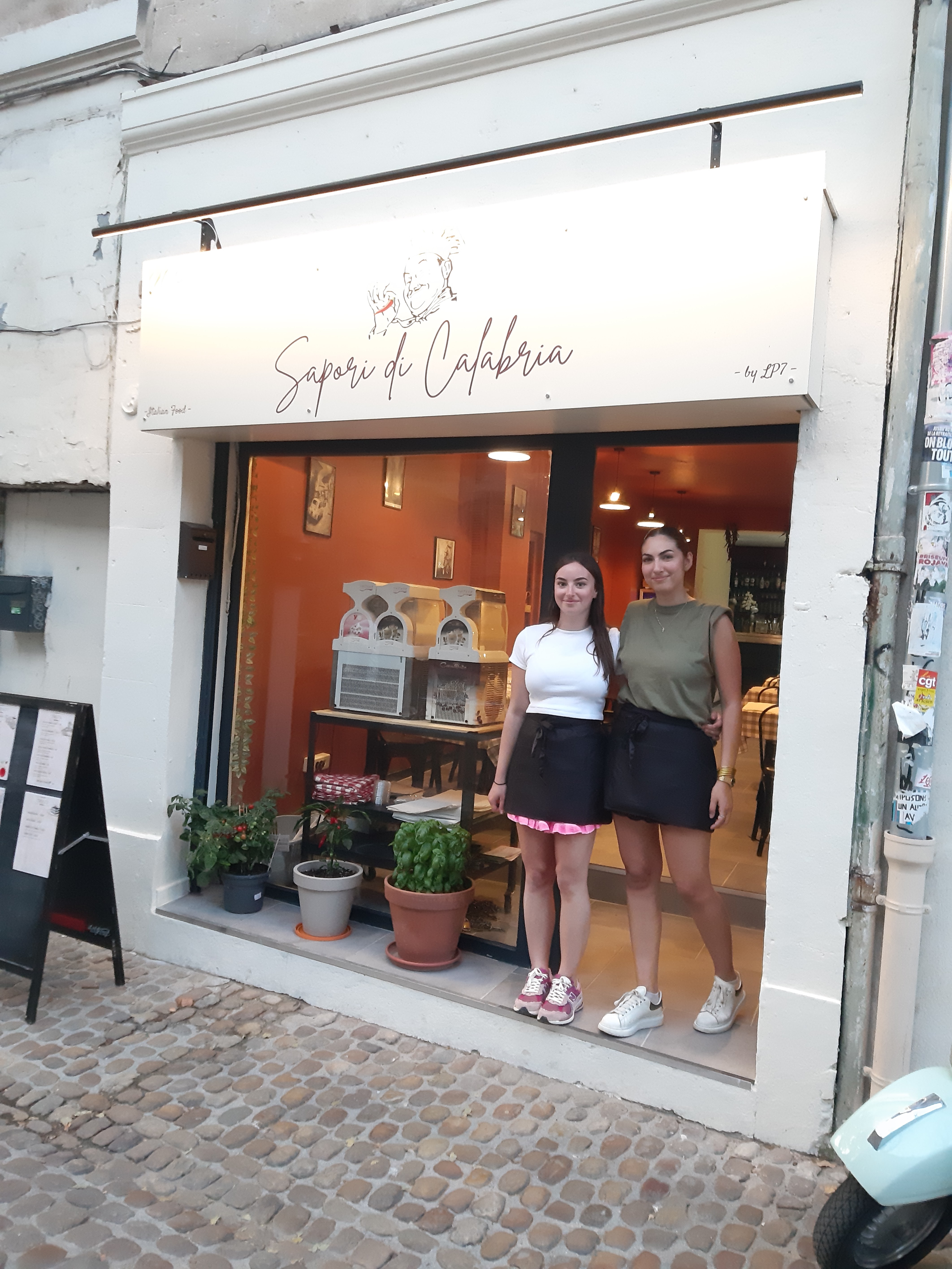 Beau nouveau restaurant à Avignon. Je viens d'ouvrir il y a 3 jours. Les tables sont dressées en terrasse sous les vieux flamboyants de la rue des Teinturiers. Les repas sont très copieux, de bonne qualité et fidèles au style calabrais. Nous reviendrons avant notre départ.