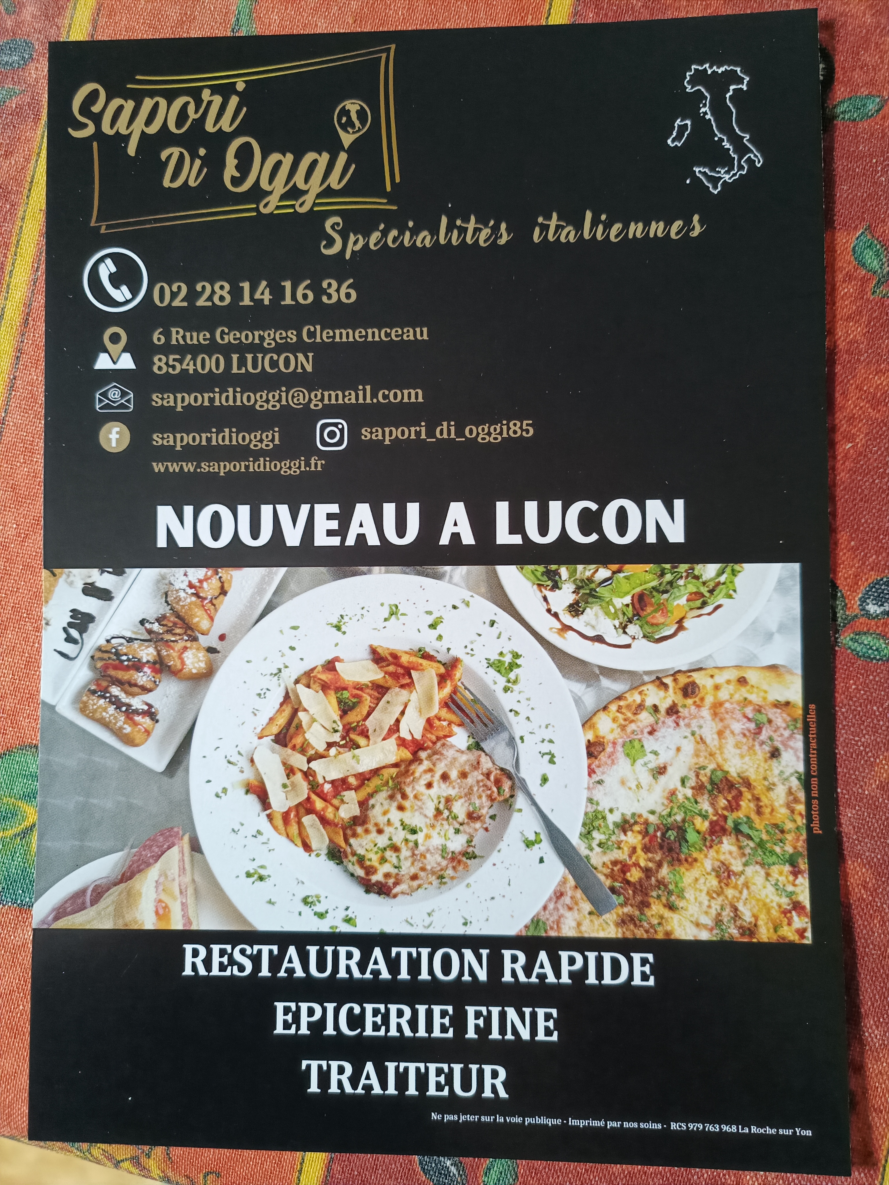 Voici toutes les informations sur le Restauration rapide Sapori Di Oggi qui ce trouve au 6 Rue Georges Clemenceau, 85400 Luçon (85). Sur cette fiche vous trouverez les photos, l'adresse, les horaires d'ouverture, le numero de téléphone et les avis clients.Vous pouvez églement rédiger un avis si vous le souhaitez en bas de page.