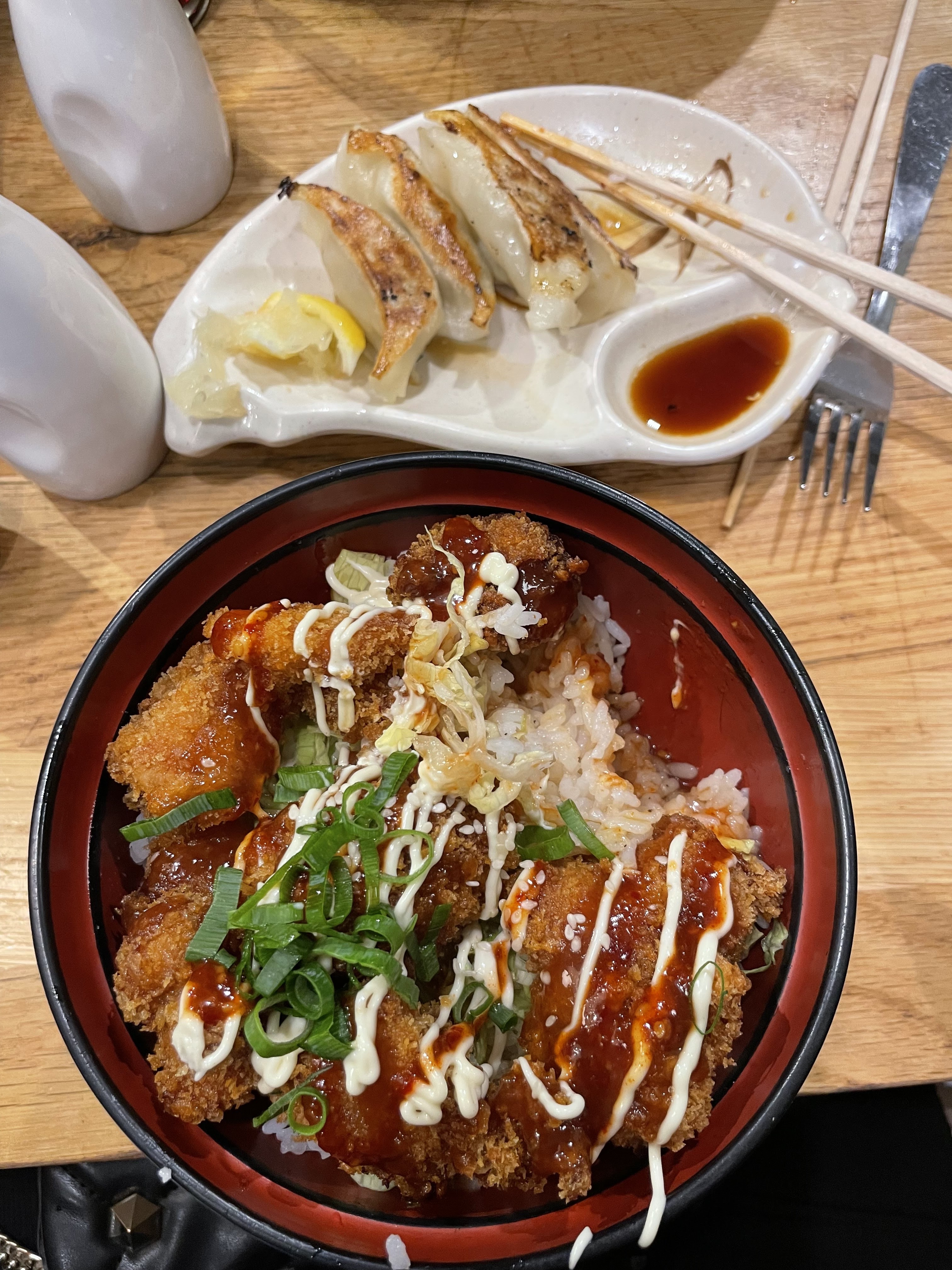 Nourriture délicieuse. Mon mari avait un bol de riz au poulet épicé (nom oublié) et j'avais du curry katsu. Nous avons dévoré la nourriture ! Personnel sympathique.