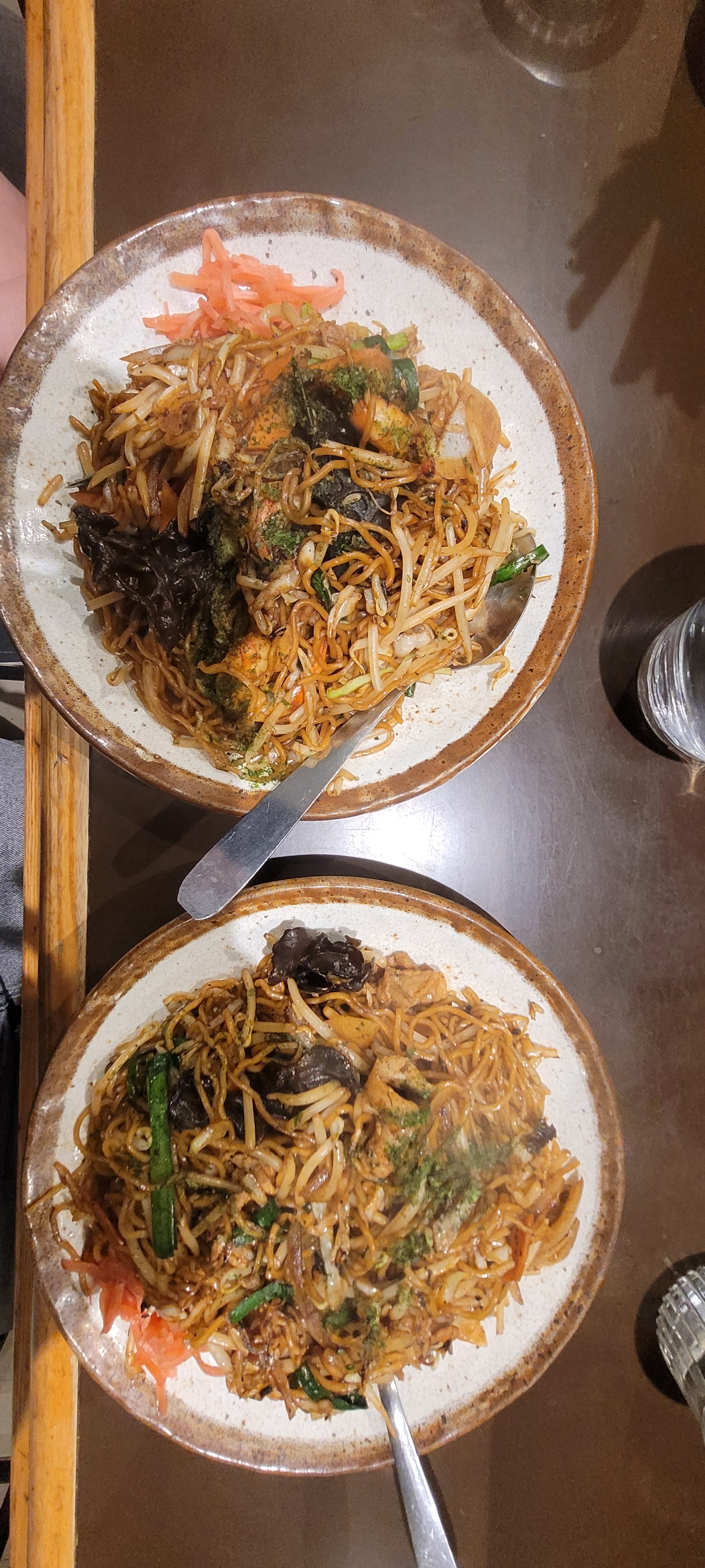 Yakisoba est bon. Ramen va bien, la base de soupe avait un goût très semblable à celui du MSG.