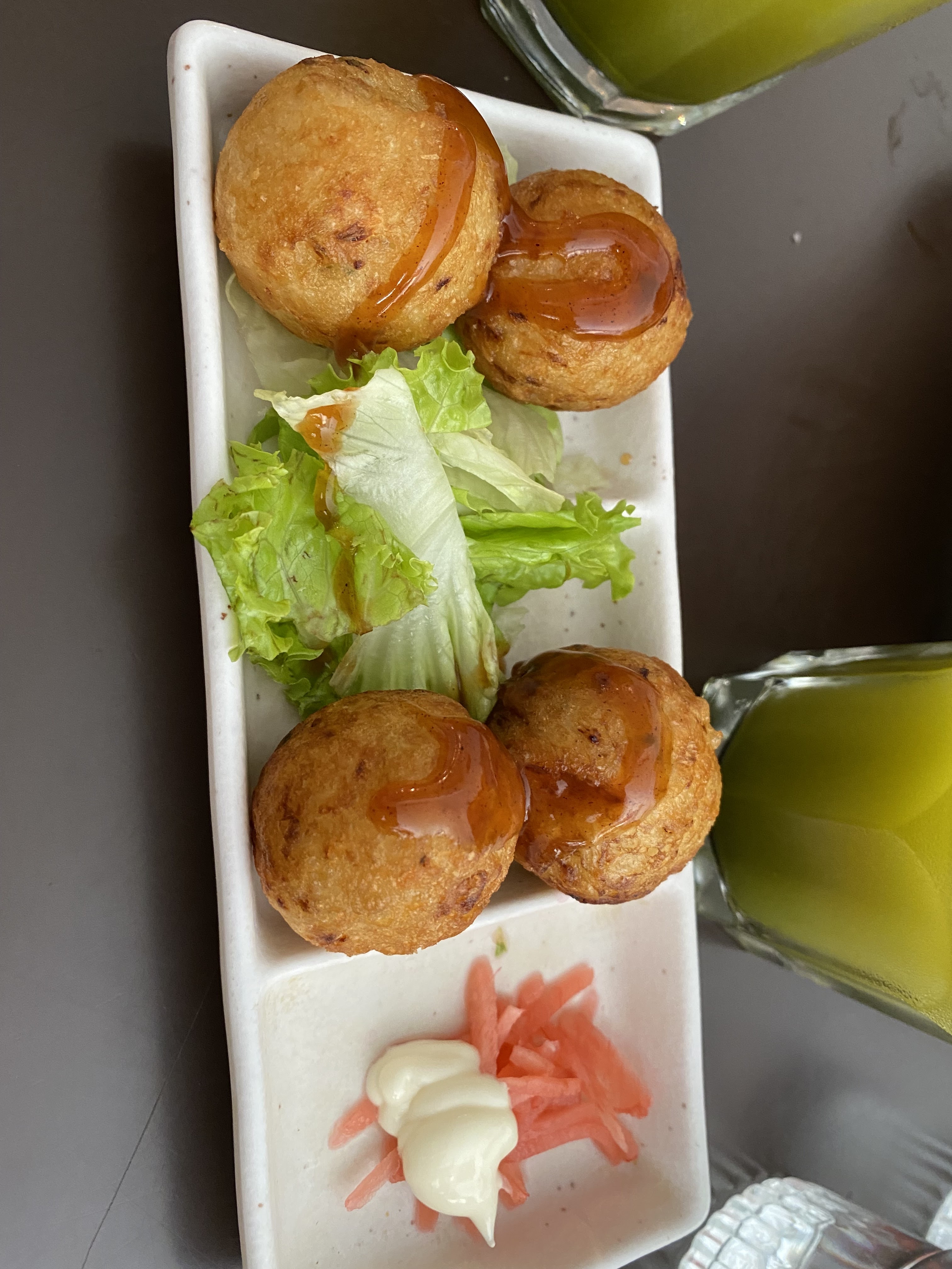 Tout d’abord, je dois admettre que la nourriture était plutôt bonne et que les boissons étaient bonnes, MAIS le personnel s’est trompé de commande. Non seulement nous avons dû attendre que nos boissons soient servies, mais ils ont également oublié deux des plats commandés. Même après avoir rappelé au serveur leur erreur, nous ne les avons toujours pas reçus. En ce qui concerne l'endroit dans son ensemble, il avait sa propre atmosphère, mais les tables et les chaises à l'extérieur étaient trop bondées et c'était tout simplement inconfortable. J'ATTENDS TOUJOURS MON BOL DE RIZ !