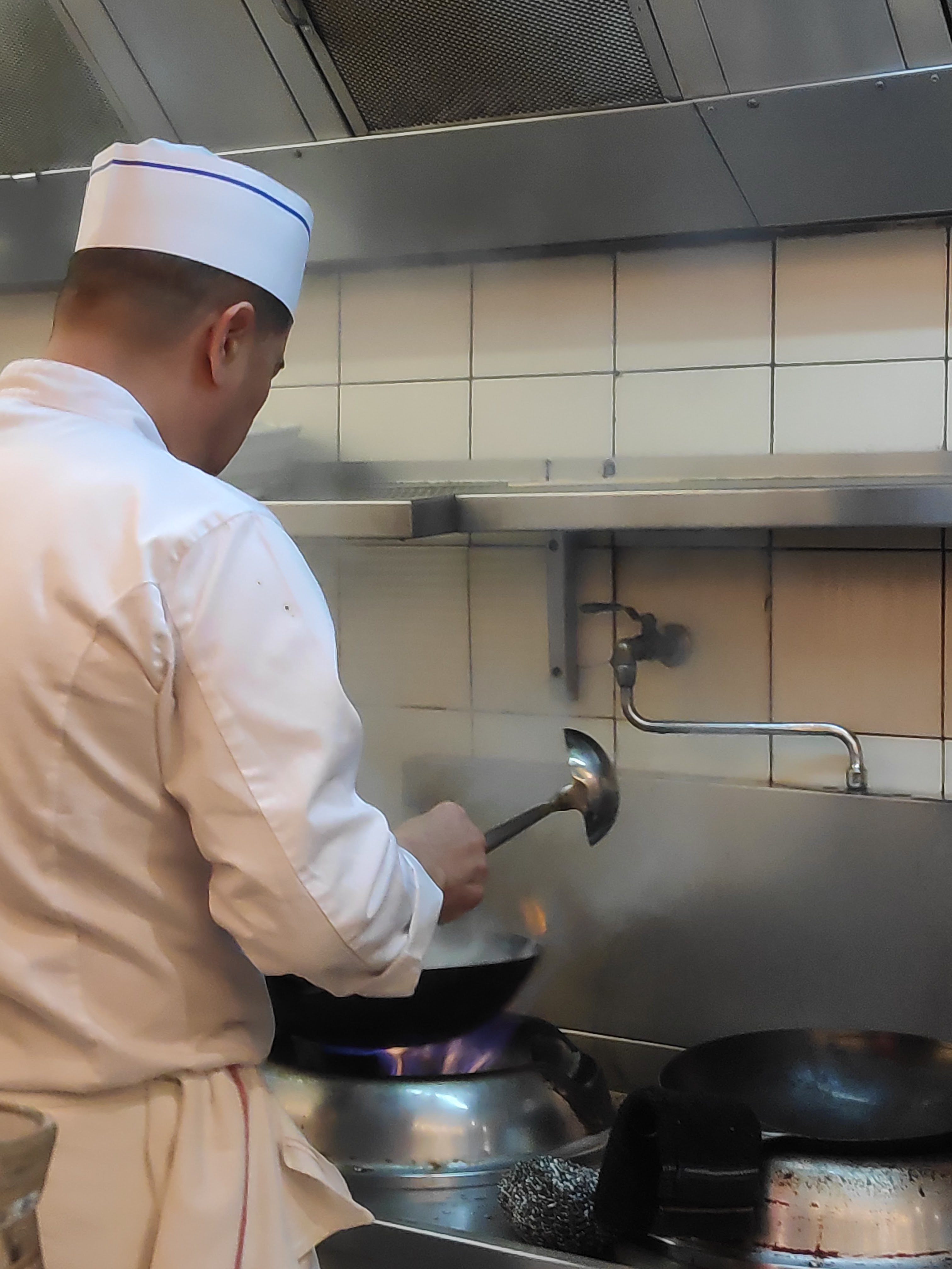 Très bonne cuisine, service rapide malgré le monde. Les serveuses pouraient être plus agréables. Il est possible de voir les cuisiniers travaillés en s asseyant au bar