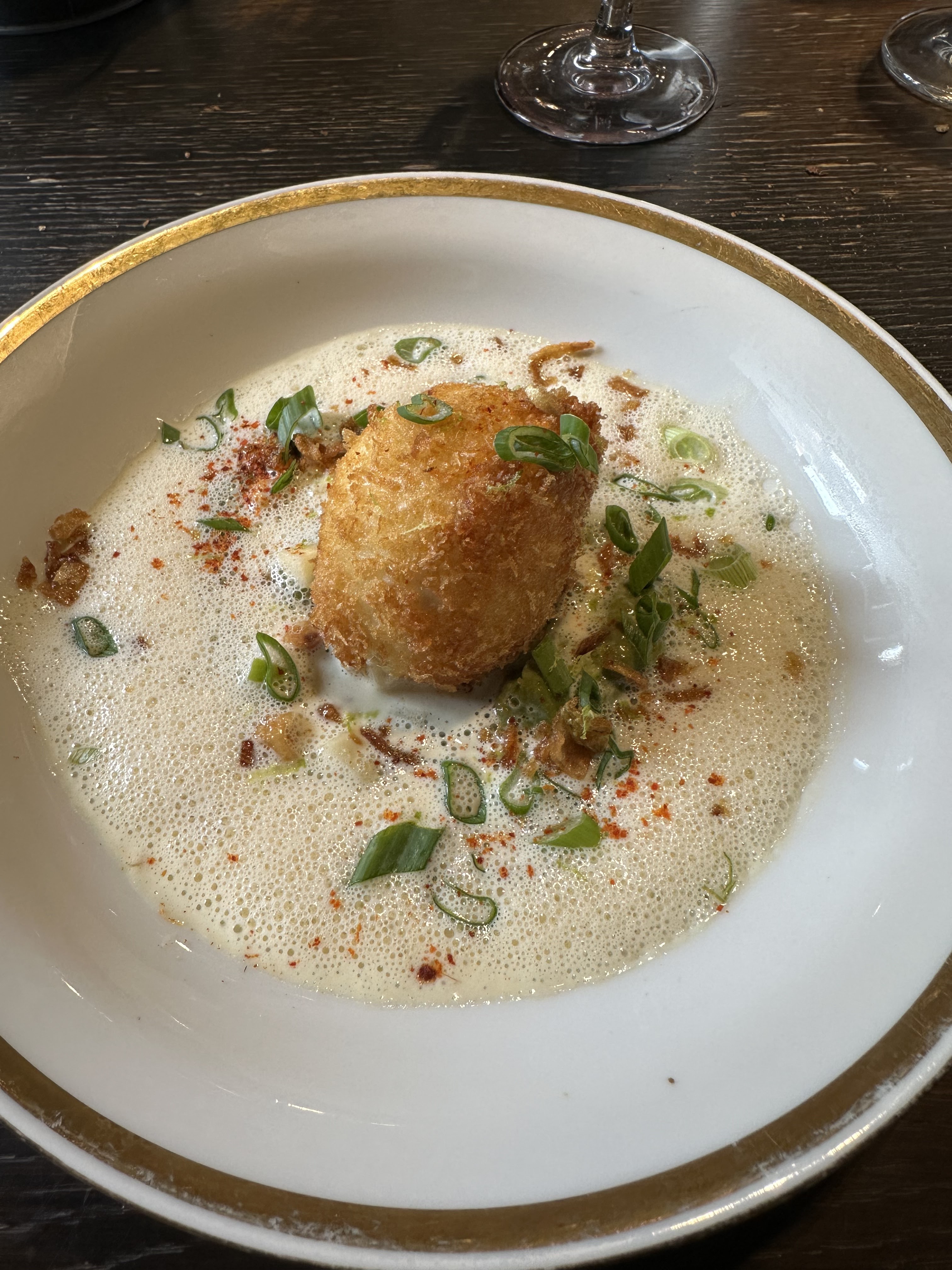 Vraiment une très belle découverte lieu agréable, personnel sympathique, et plat excellent l'œuf croustillant et le velouté en entrée à tomber. La volaille et les grosses coquillettes validées, et l'entremet une tuerie... je recommande...