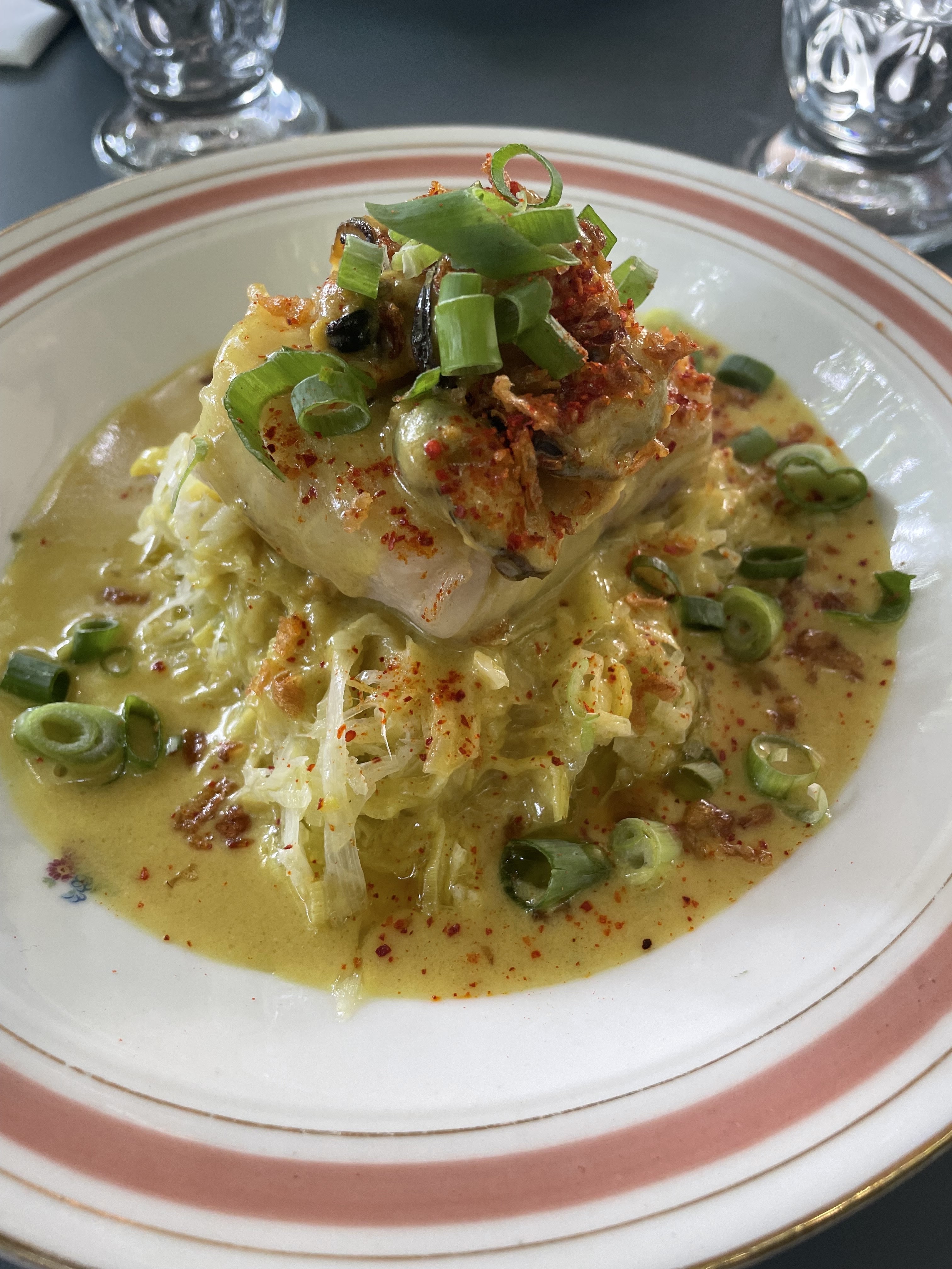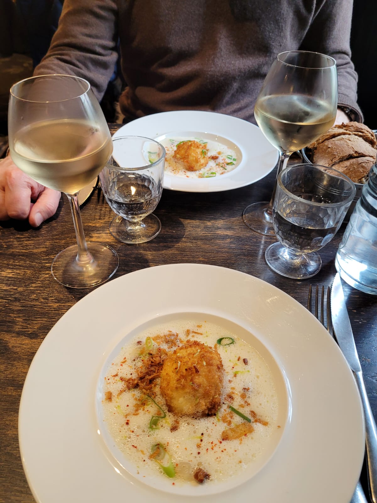 Le service est attentionné, la déco est soignée et l’endroit très cosy. Mais je n’ai pas aimé la cuisine. Les plats baignaient dans la sauce, on ne voyait pas le pave de lieu tellement il y avait de sauce. Pareil pour la cote de veau, on aurait préféré à avoir la sauce dans un récipient à part. Dommage. Mais j’y retournerai probablement une autre fois pour me faire un second avis. Car l’endroit est très sympa