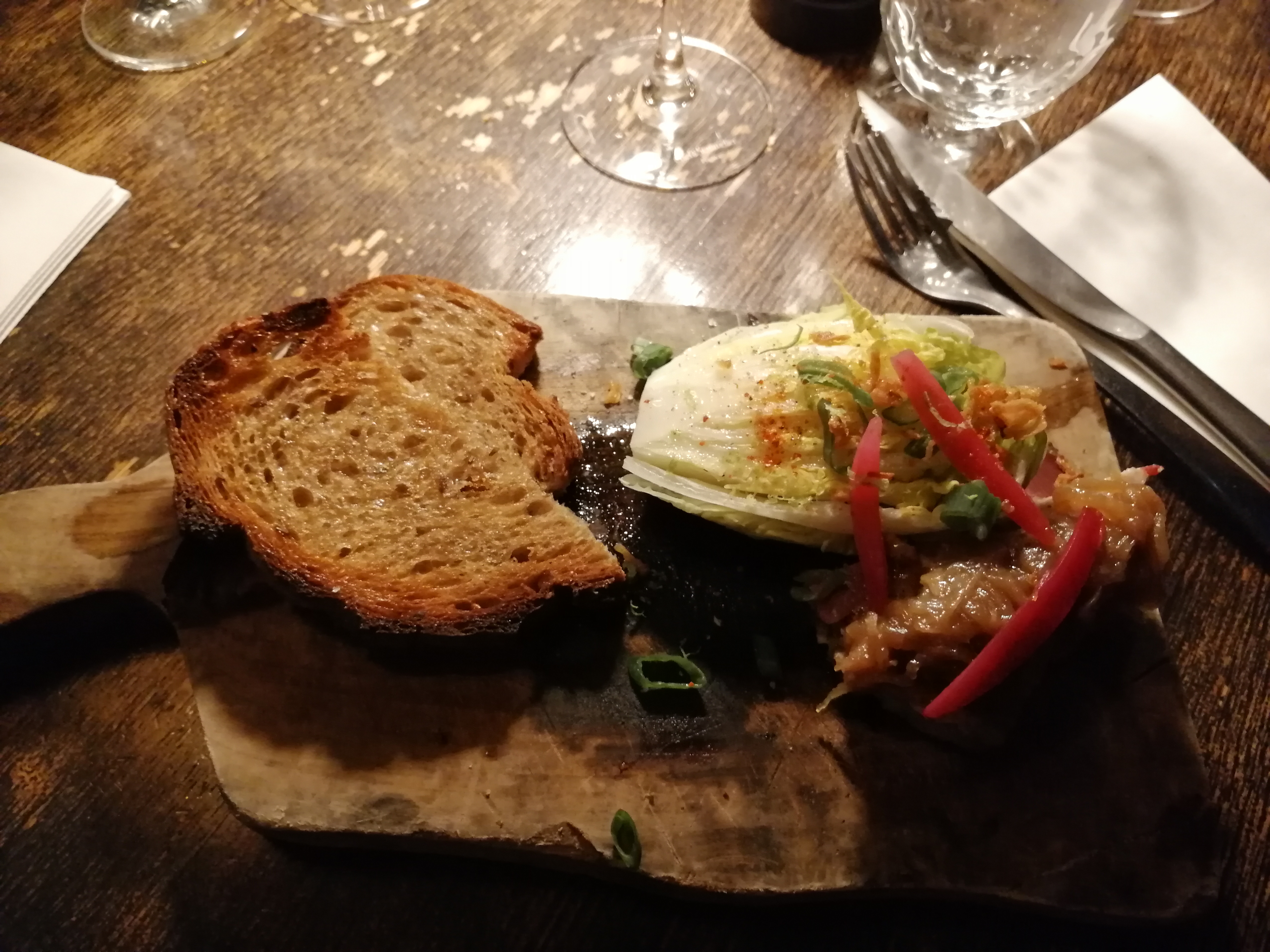 Un cadre moderne et chaleureux. Une cuisine goûteuse et savoureuse. Dommage que les tensions entre le personnel se ressentent sur le service : beaucoup d'attente (ce qui n'est pas habituel des bistrots pas parisiens) et des remarques entre serveurs et manager pas très professionnelles.