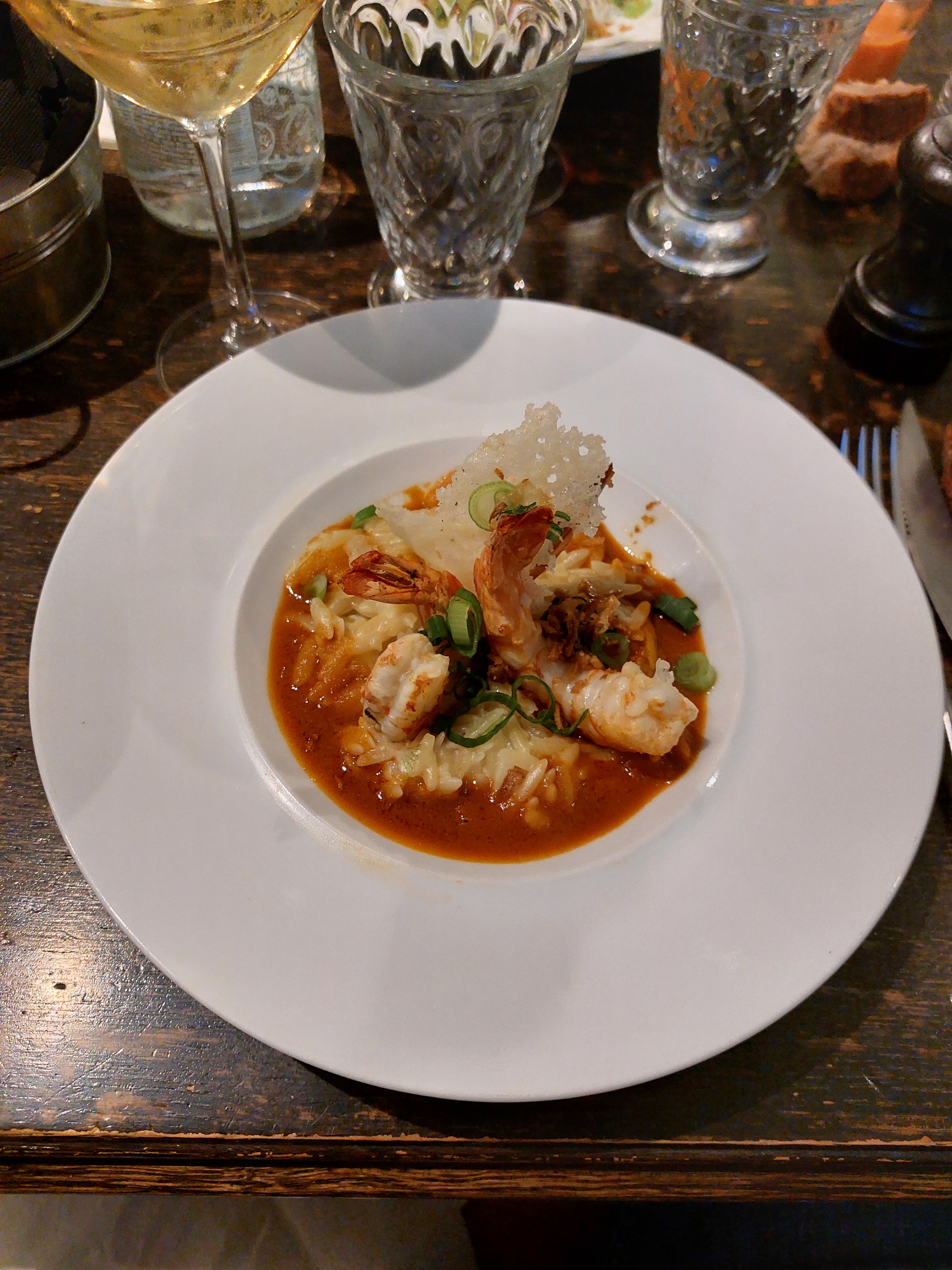 Très bon accueil et très bon rapport qualité /prix. Le risotto aux gambas est très bon cependant la mousse à la bisque est un peu écœurante. Le cappuccino délicieux cependant il est servi dans un verre sans anse alors qu'il est brûlant. Tout le reste est parfait et j'ai adoré le pain frais accompagné d'aïoli pour faire patienter, un régal!