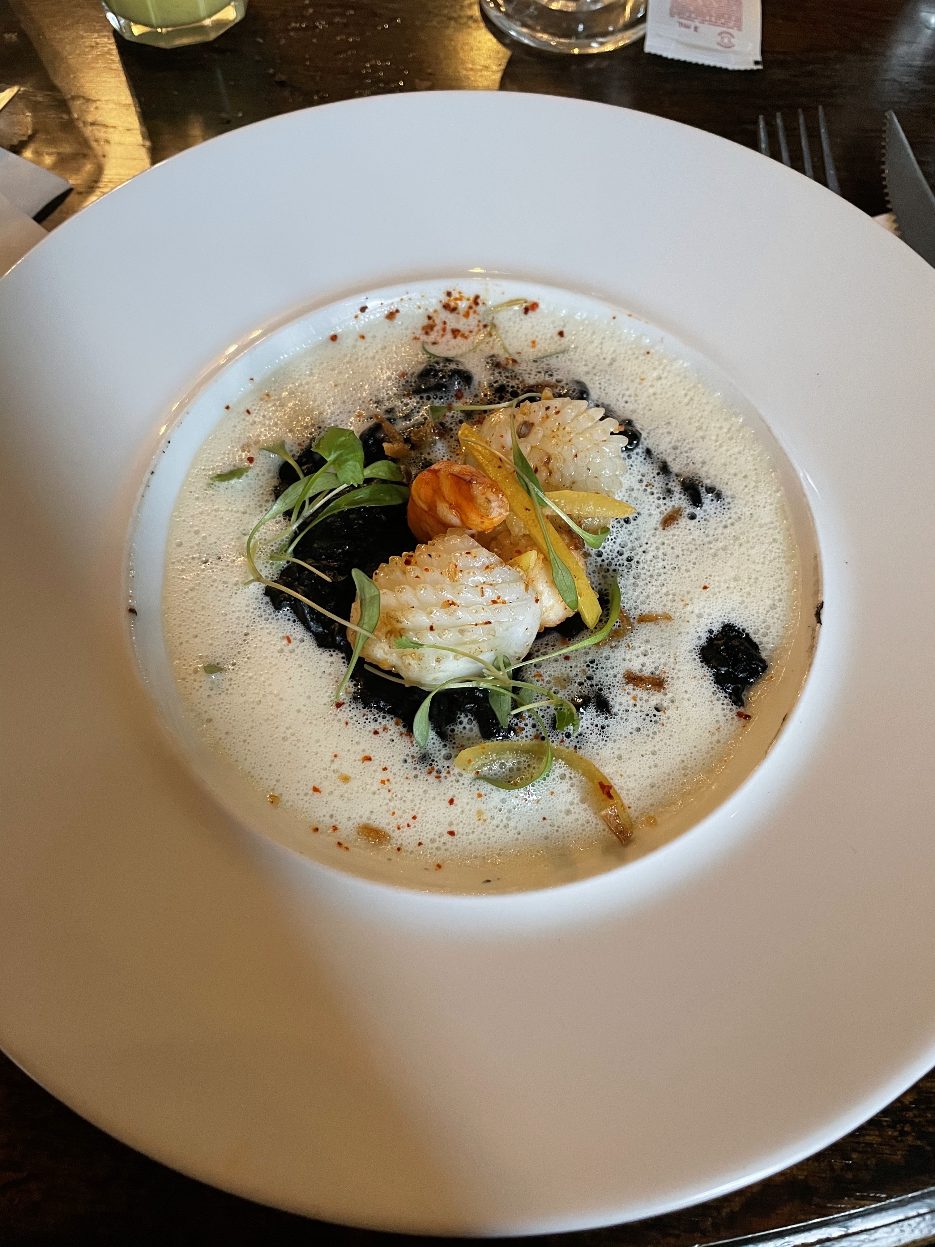 + Dîner excellent, les cuissons parfaites, le personnel très sérieux et sympathique, et le lieu est très agréable et chaleureux en soirée. - Les plats auraient mérité d’être plus chauds et des options végétariennes ne seraient pas de trop.