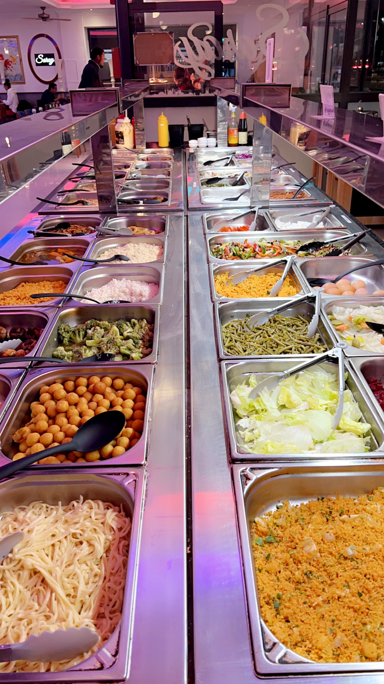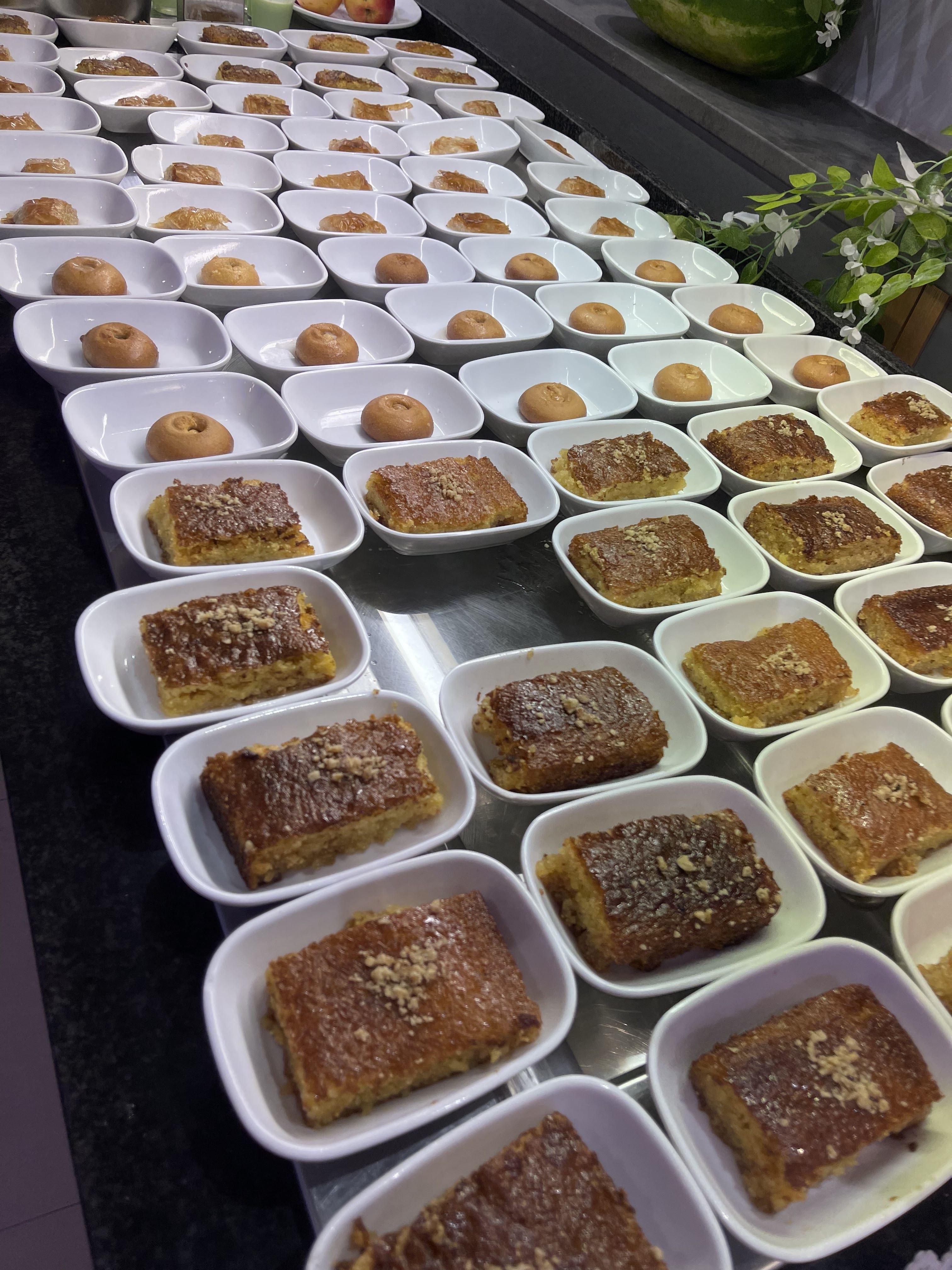 Au premier abord le restaurant est avenant et propre , le buffet bien garni.Les entrées sont variées et fraiches, le buffet chaud pas mal non plus, il y a du choix pour les viandes . Par contre le buffet des desserts ça va pas du tout….un bon coup de nettoyage s’impose! Les bacs de glaces sont quasi vides et la glace vanille est toute fondue…..le raisin et le flan ont fait leurs temps , ils datent…,.la baklawa est industrielle et c’est dommage…. Le serveur ne comprends rien et nous a servi les viandes de la table voisine. Il faut absolument remédier à la propreté des wc, les avis le signalent quasiment tous. Voila sinon dans l’ensemble le concept est génial et original et avec de la rigueur et du soin en prenant compte les avis . Dernière chose , je n’ai pas fait attention mais avez vous une affiche signalant que votre restau est hallal? Et aussi déçu en découvrant sur la carte la vente d’alcool….