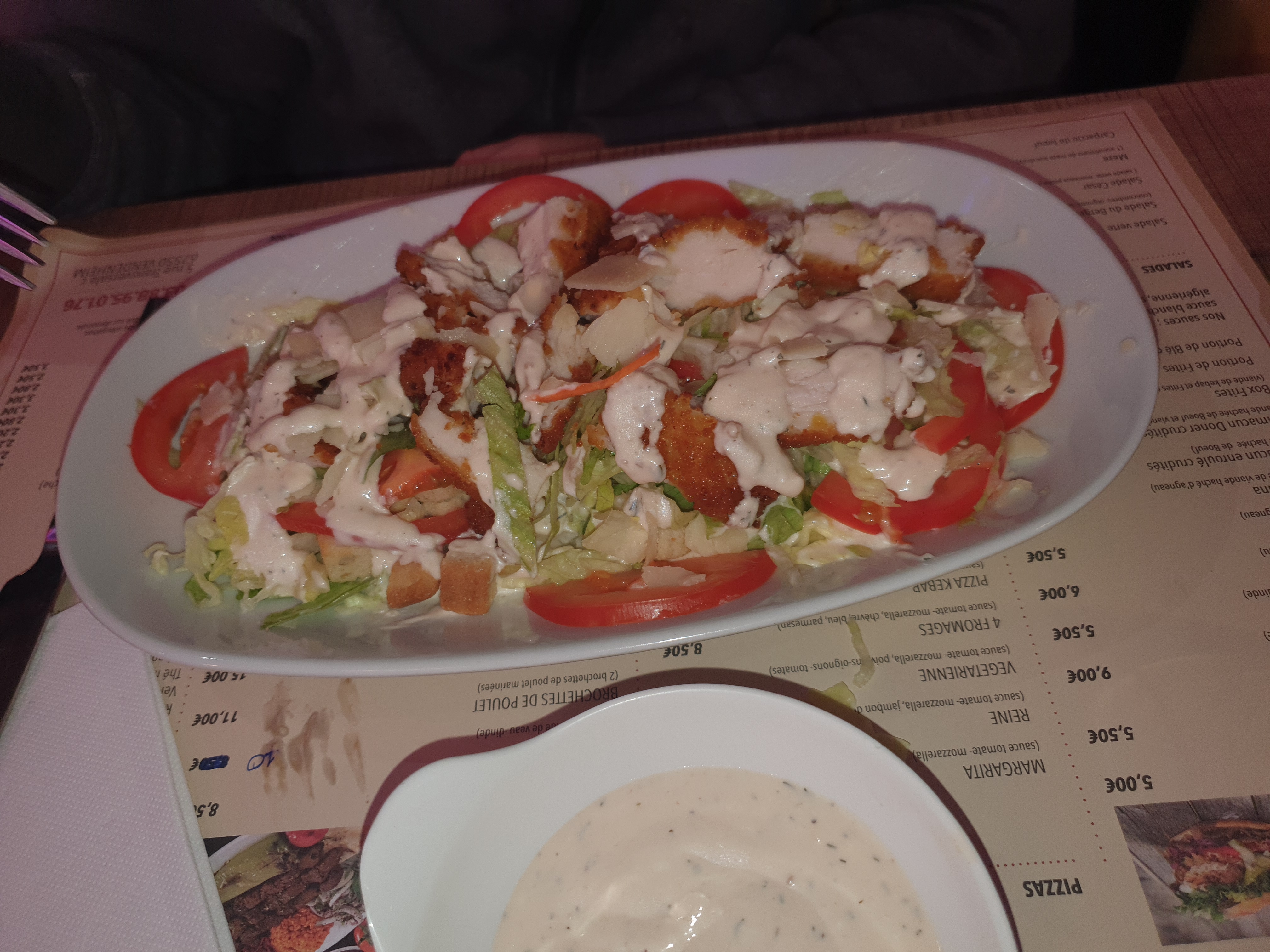 Restaurant sympathique Le prix et cohérent vis à vis de la quantité j’ai pas réussi à finir tout Le service et top le patron et a l’écoute