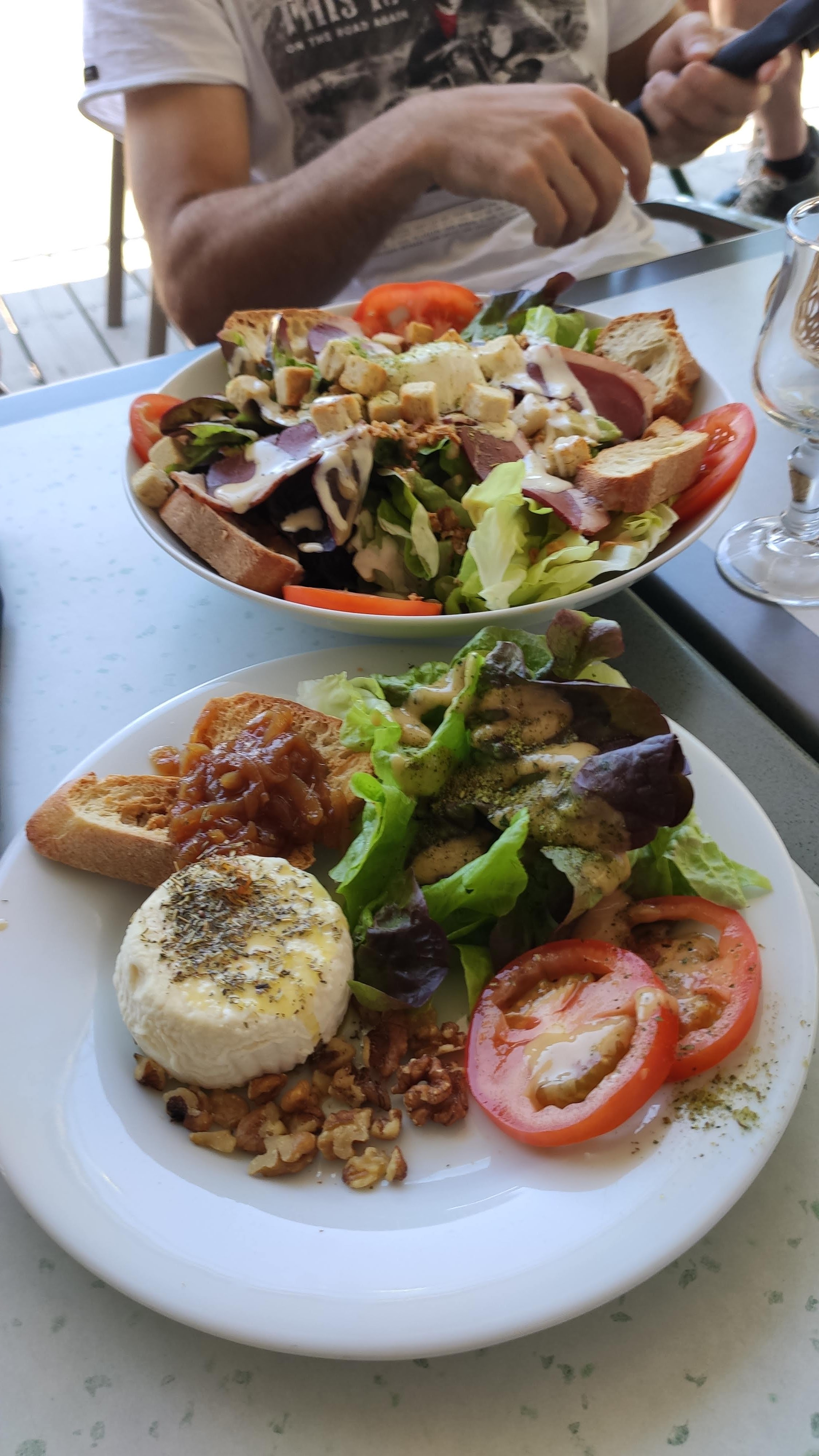 Nous avons prit la salade de l'été très copieuse et fraîche. Restaurants idéalement situé avec une vue sur le Mont Ventoux, avec personnel accueillant. Nous conseillons cette étape dans ce petit village de Sault. Petit bémol sur le pain qui était un peu dur. Hygiène pour le covid est bien respecté