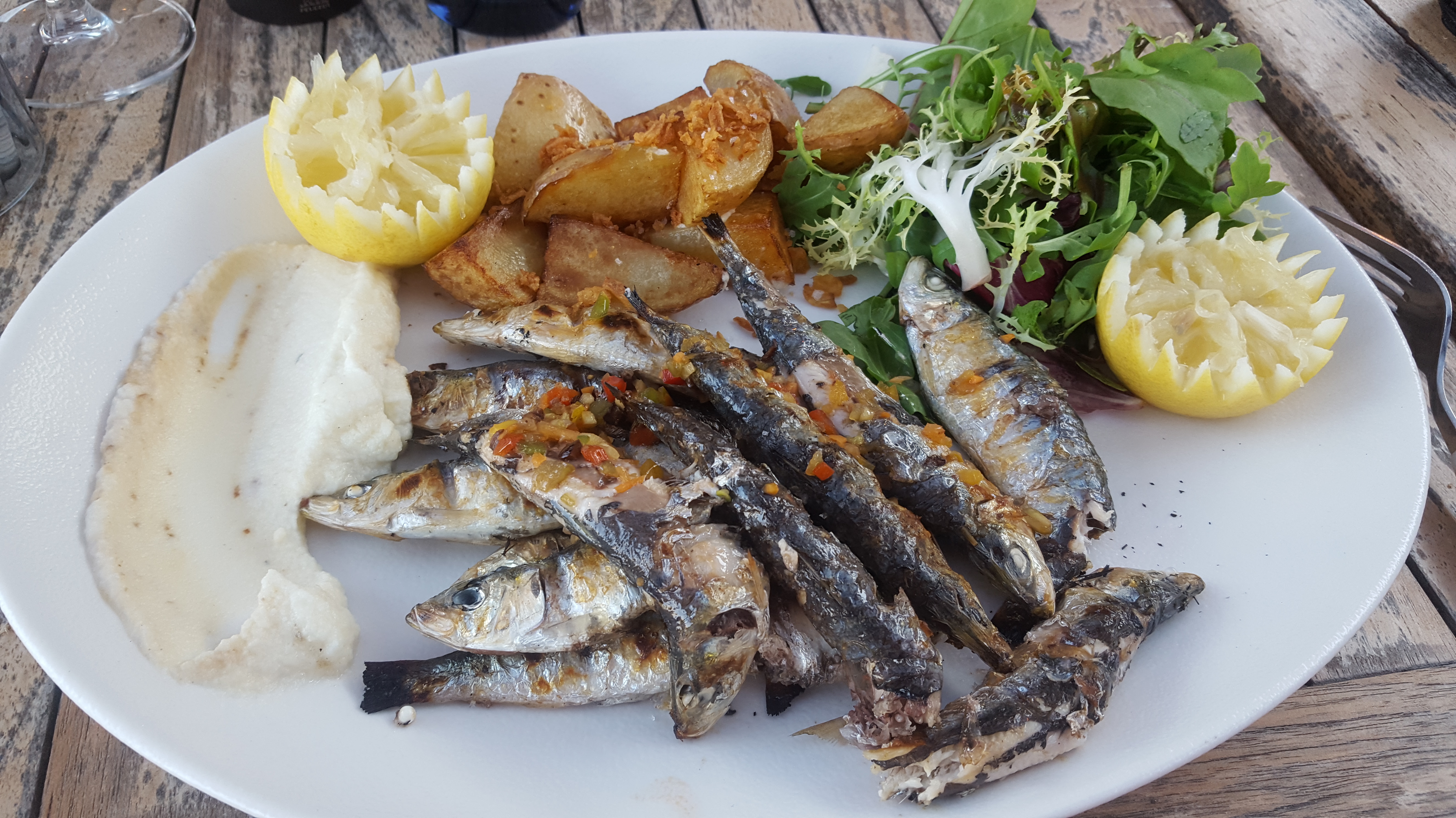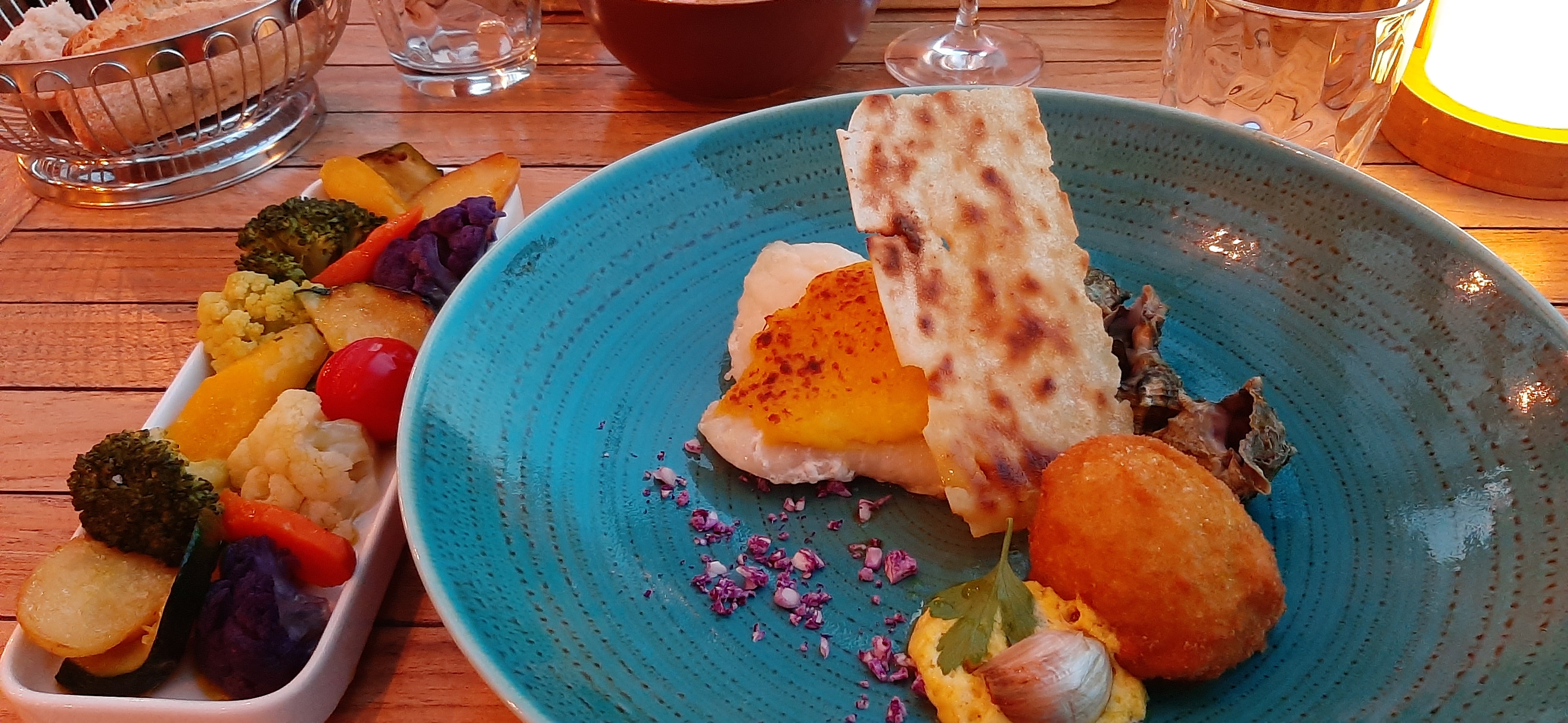 Parfait, des entrées à partager, et sur les conseils de la serveuse qui du reste très sympathique, un choix de 4 entrées à partager et d'un accompagnement pour compléter, largement suffisant pour un repas suivi d'un dessert. Des plats gouteux et joliment présentés, frais et bien exécutés. une vue sur le port, pas trop de monde car fin de saison un moment de bonheur. je recommande cet établissement.
