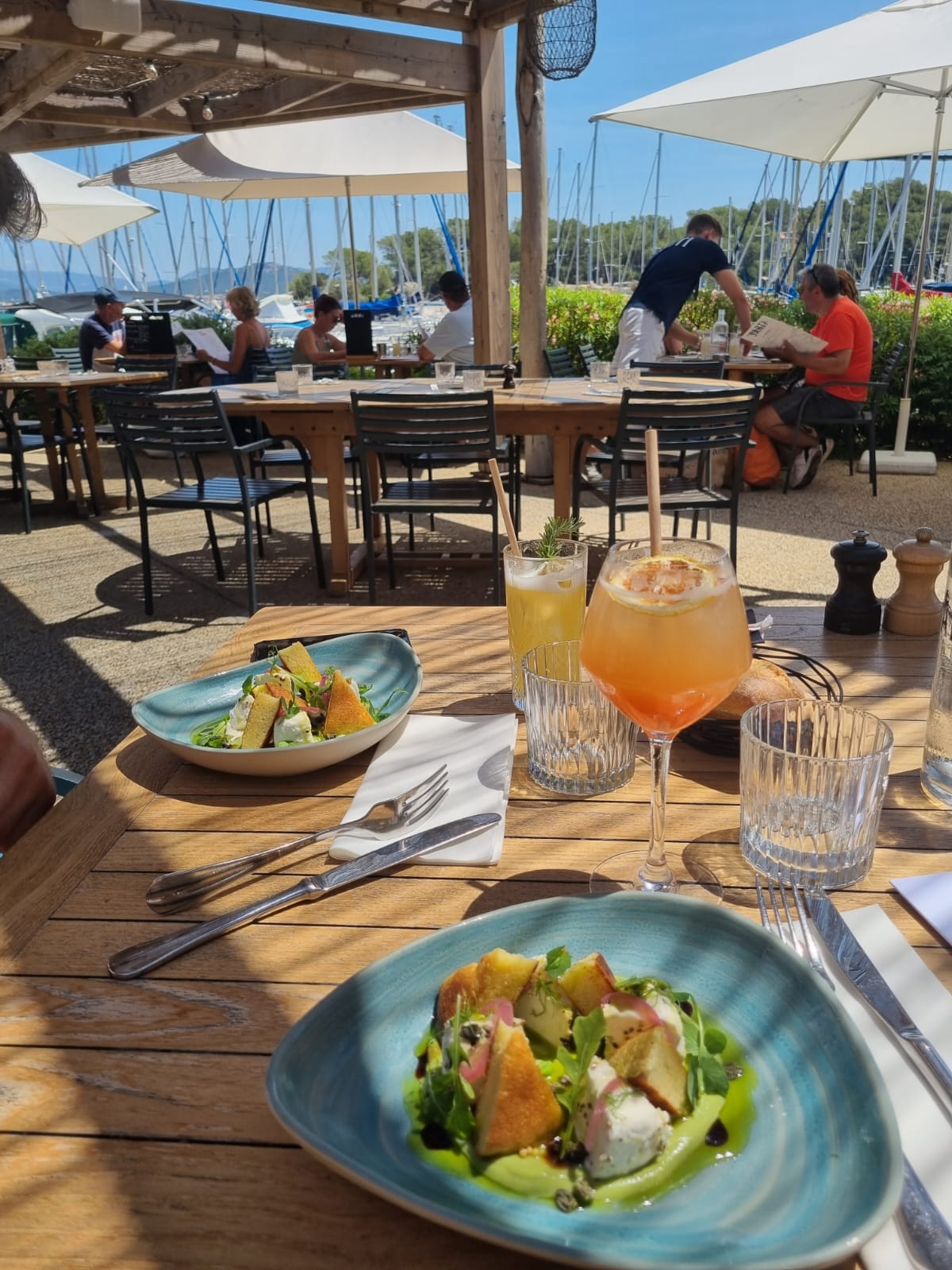 Extraordinaire vue sur la Marina avec des odeurs de romarin, un service au top tous les serveurs et serveuses (Sarah-lou notamment) étaient aux petits soins avec nous et en plus un service rapide. Les entrées sont juste à tomber par terre félicitations.